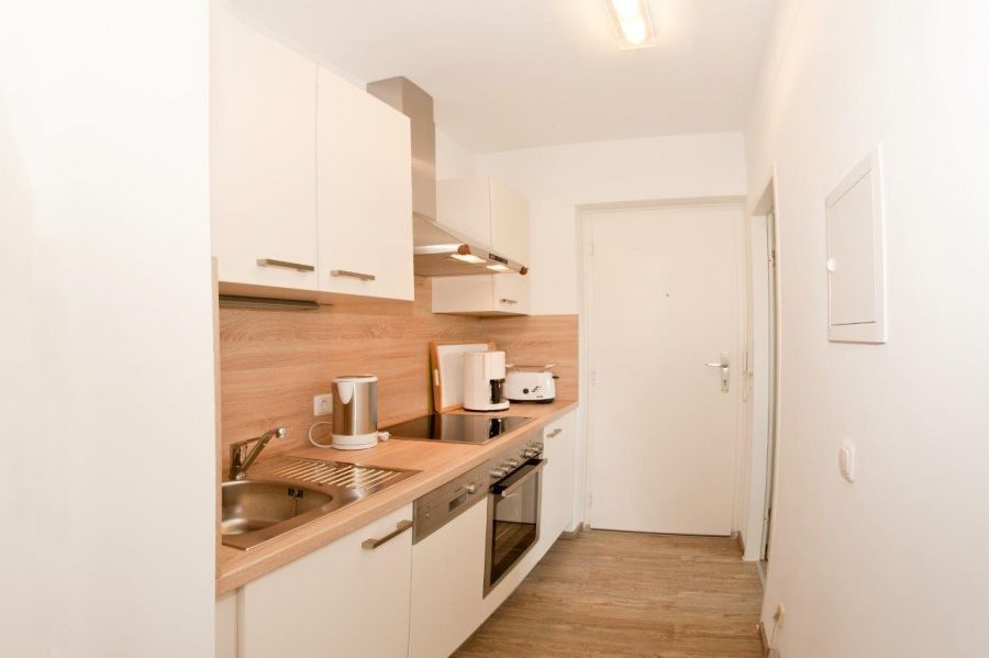 Komfortabel und stilvoll eingerichtetes, kernsniertes (Neubaustandard) Appartement mit separater Schlafnische (Bett 140/200) und einer Schlafcouch (160/200) im Wohn- und Esszimmer. Die Wohnung eignet sich optimal für die Nutzung durch zwei Personen oder einer Familie mit einem Kind.