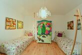 Die Wohnung verfügt über eine praktische und sehr geschmackvolle Einrichtung. Sie wohnen in einer Bildergalerie. In der ganzen Wohnung hängen viele schöne Bilder. Im Kinderzimmer wurde sogar der Schrank zur Malfläche umfunktioniert und mit einem stilisierten Wald bemalt.