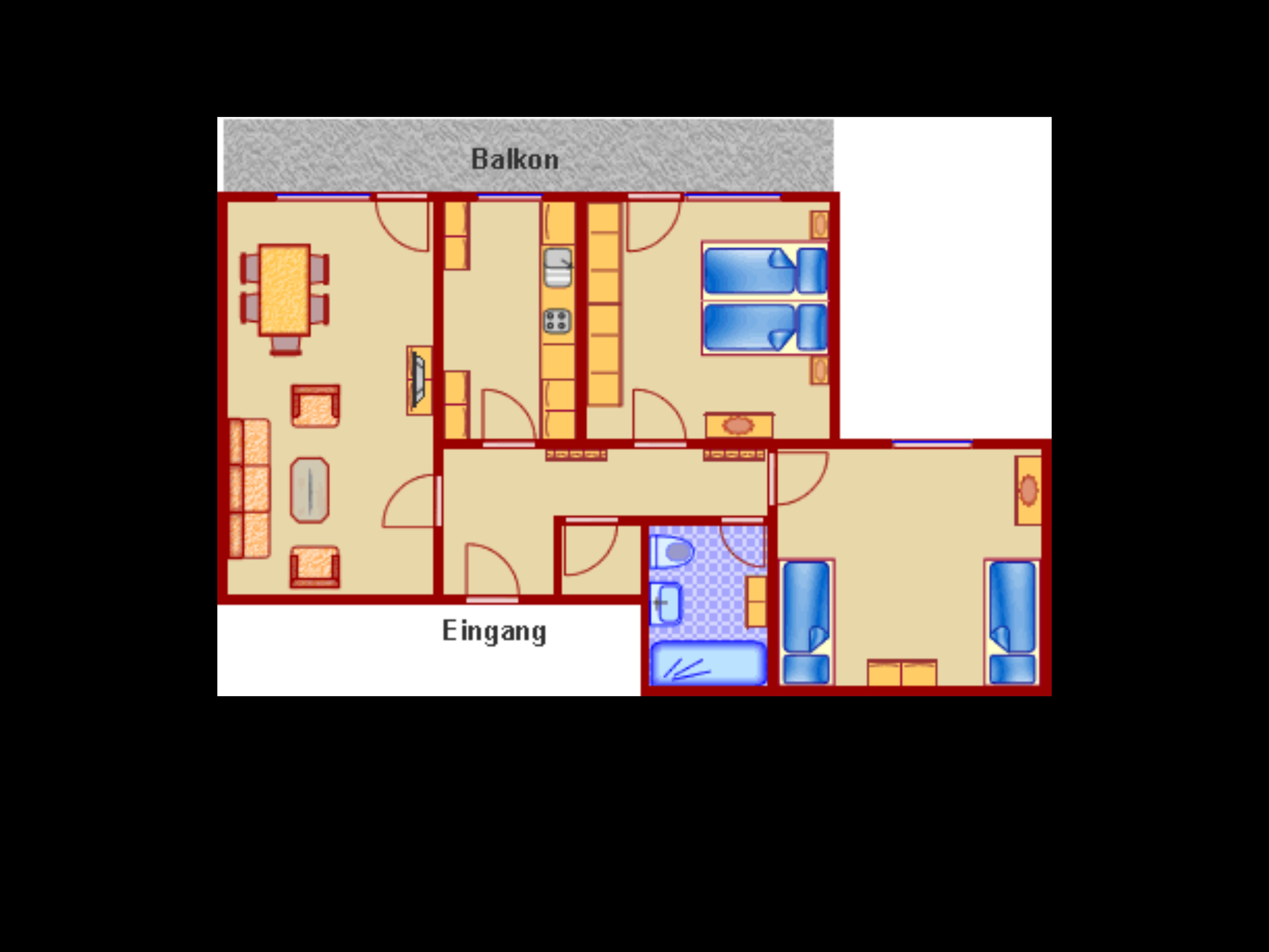 • großer Balkon (18 qm) mit Essplatz und Sitzgarnitur. Liegestühle finden Sie im Schlafzimmer neben dem Kleiderschrank. Die Kissen für die Sitzgarnitur sind bei Regenwetter im Schlafzimmerschrank bzw. daneben gelagert.