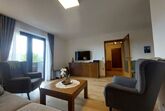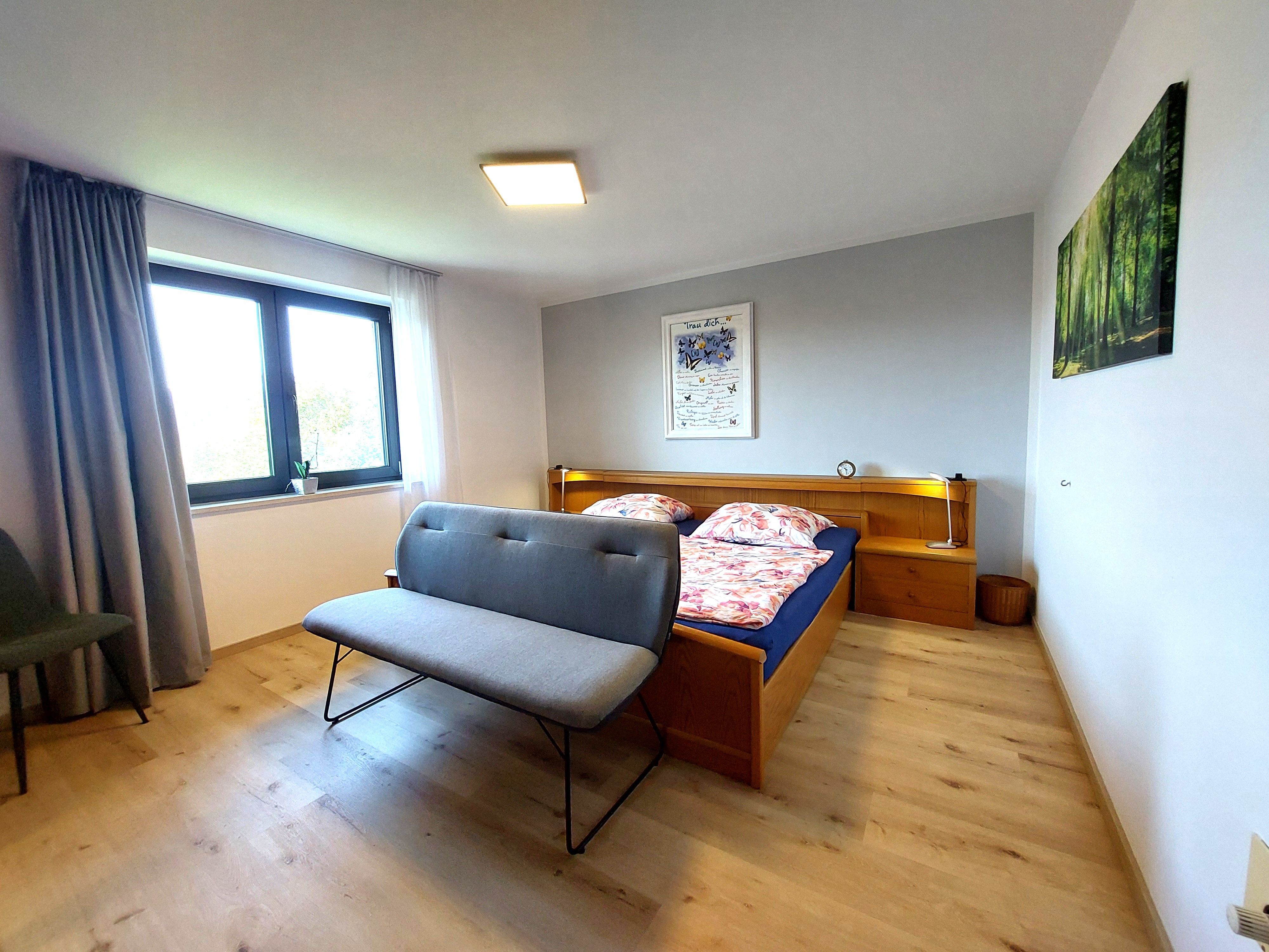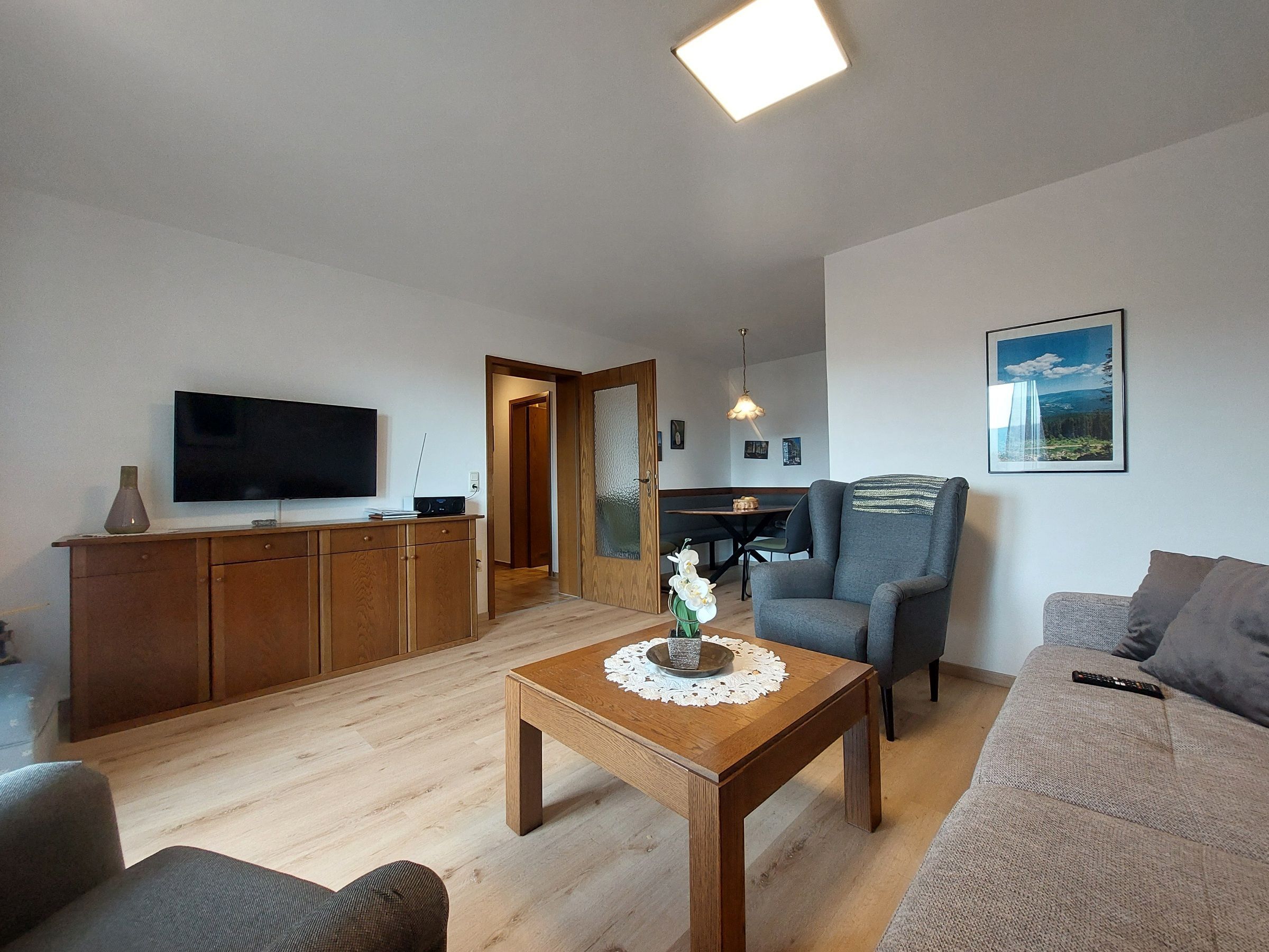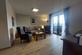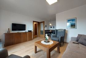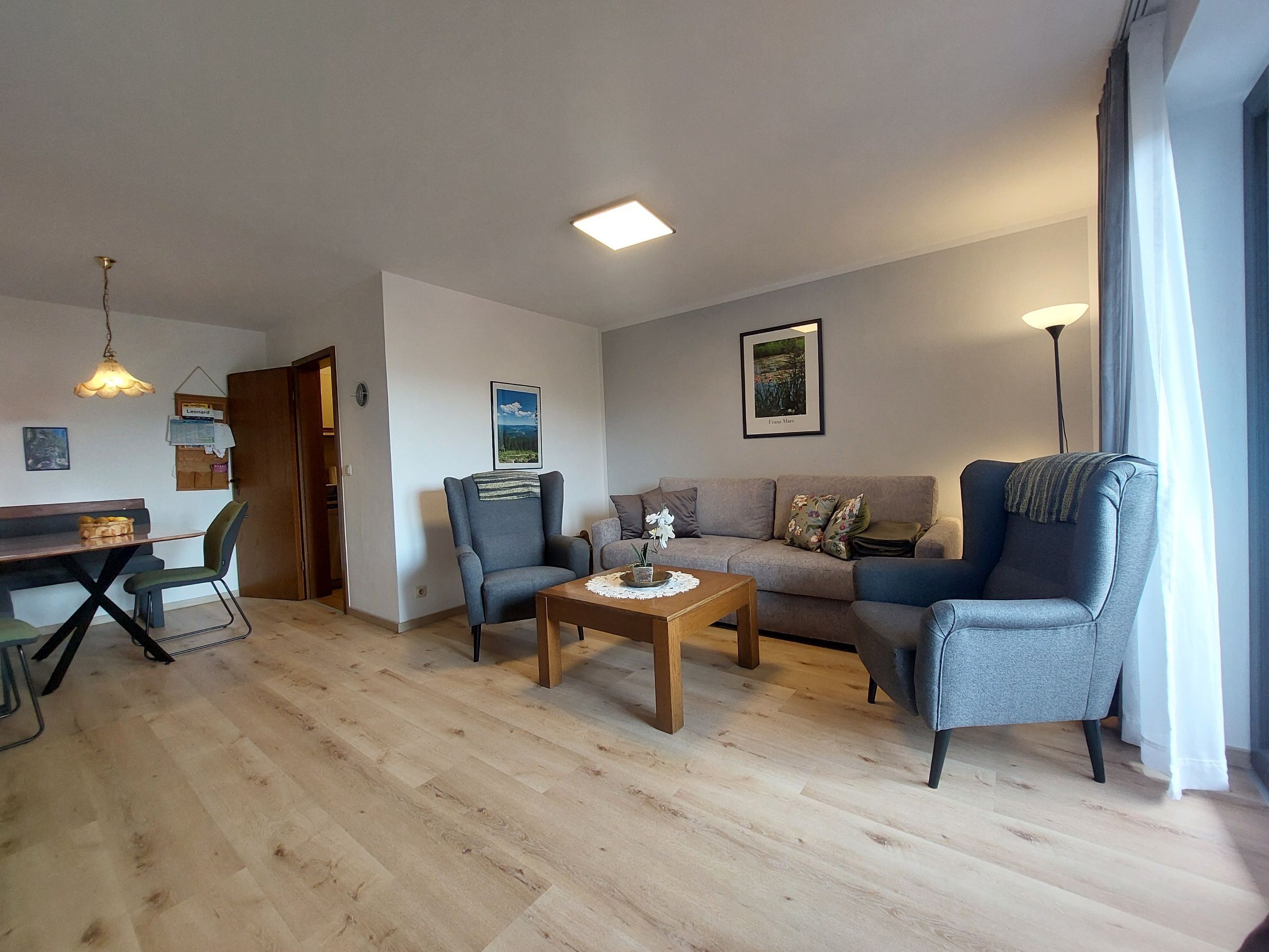 • Das Wohnzimmer ist mit einer neuen hochwertiger Schlafcouch für 2 Personen, 2 Sessel, Sideboard und Flachbild-Fernseher (Sat-TV) ausgestattet;