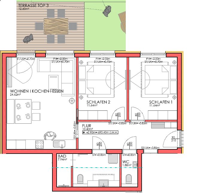 Das Appartement 61 m² ist auch nur mit einem Schlafzimmer buchbar.