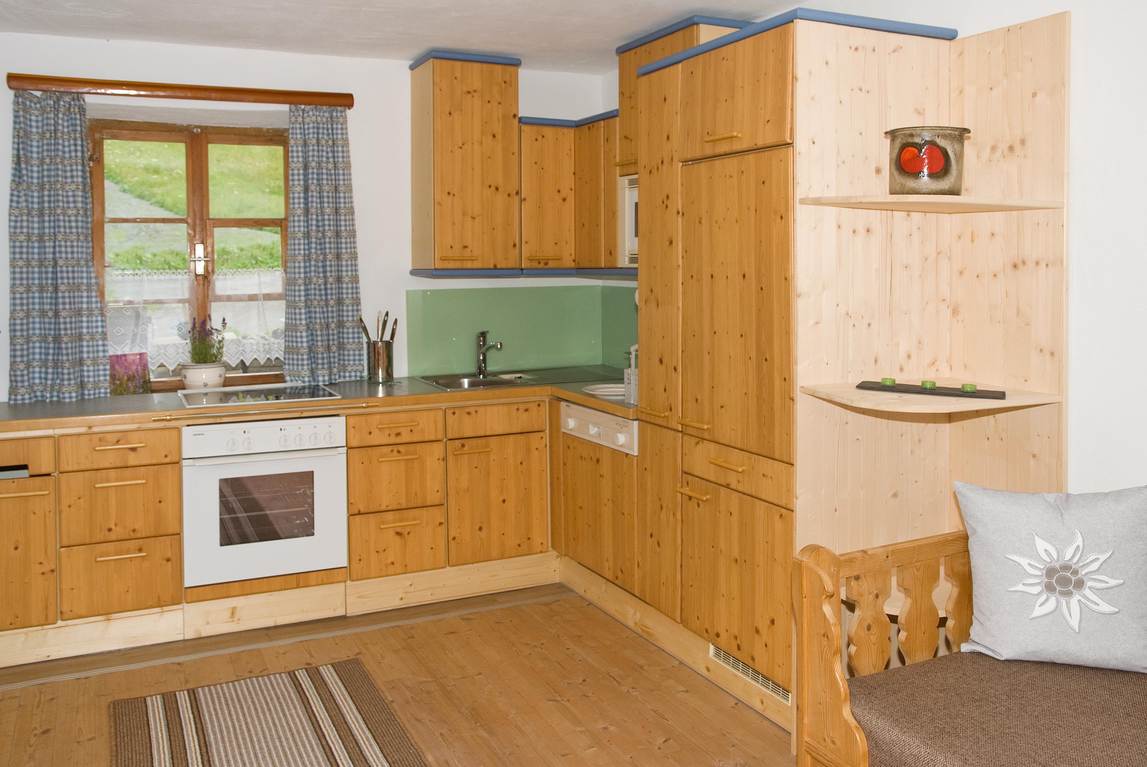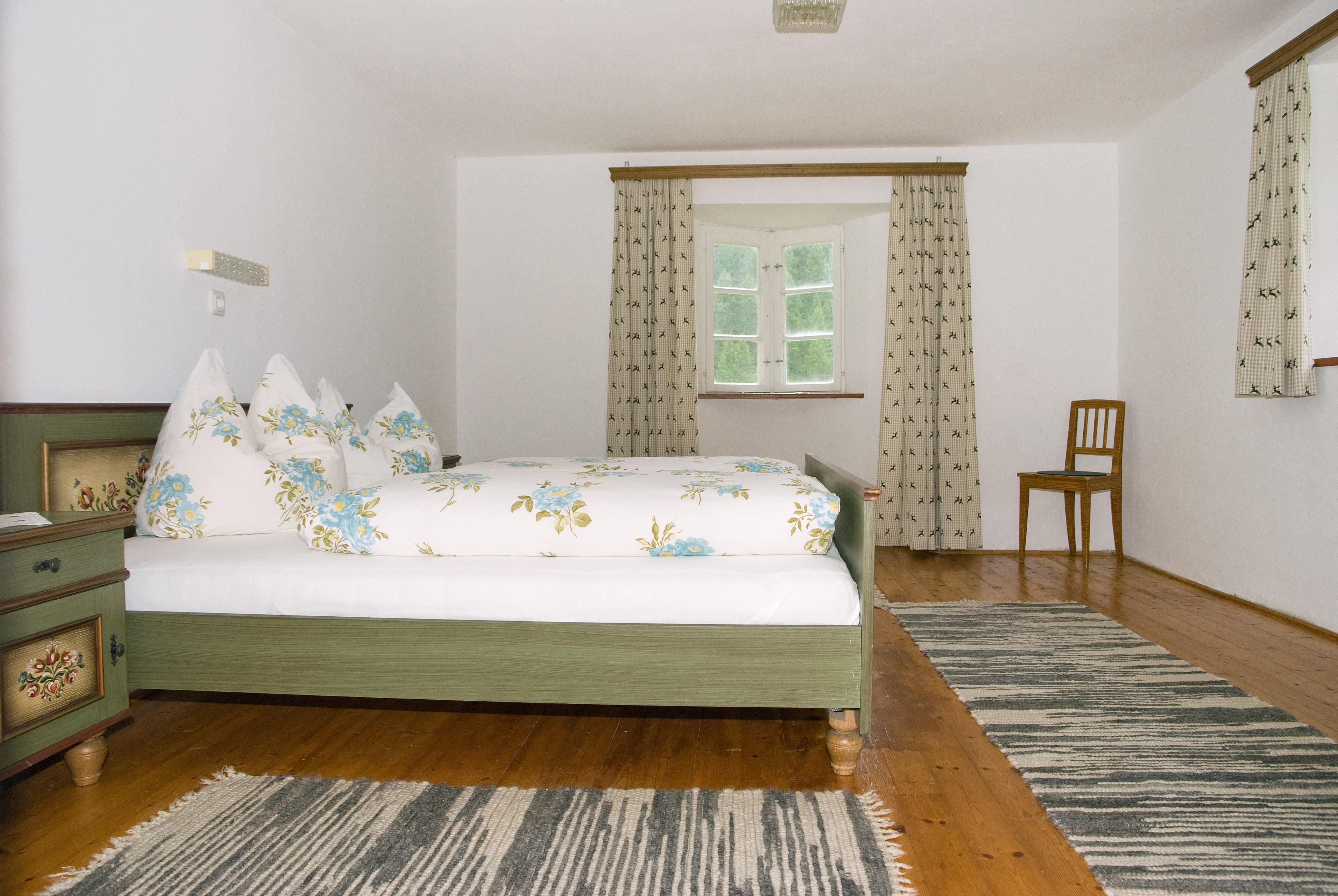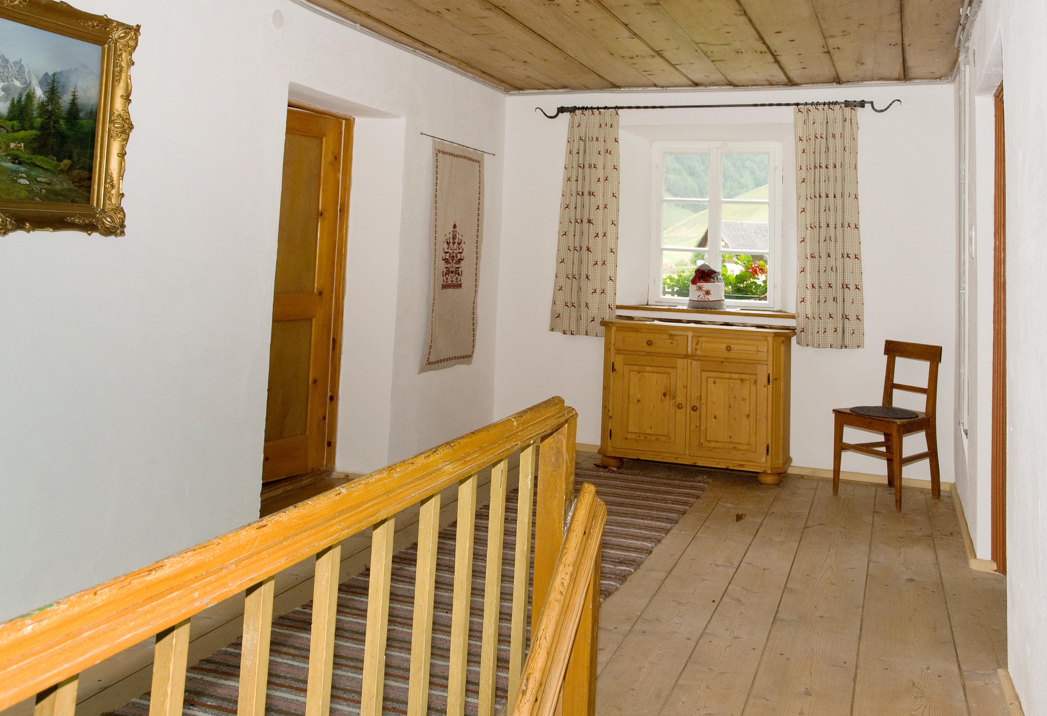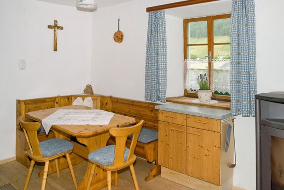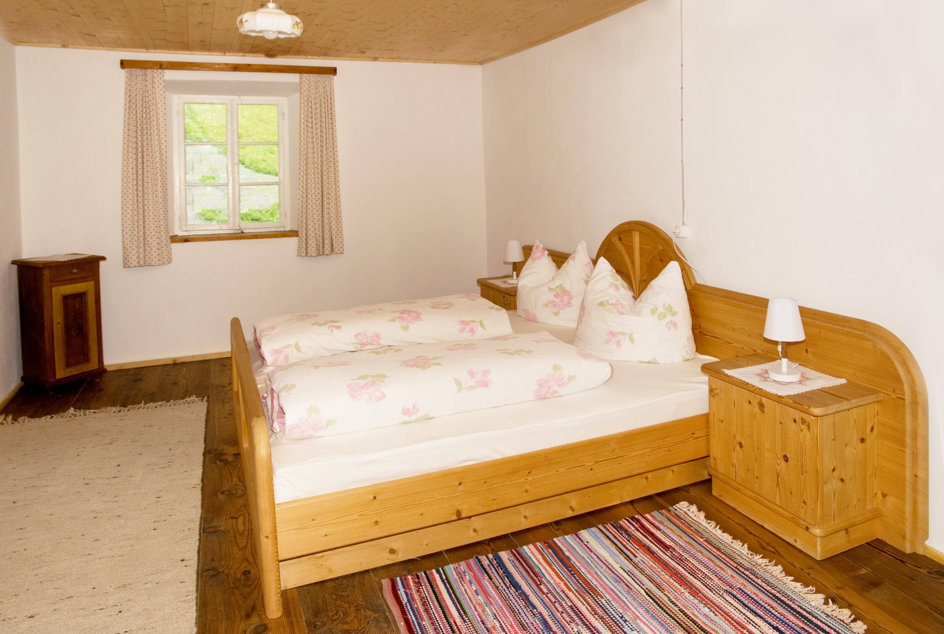 Unser altes Bauernhaus bietet Platz für bis zu 10 Personen in fünf Schlafzimmern, wovon sich eines im Erdgeschoss befindet. Neben der gut ausgestatteten Küche, ist das Highlight sicher die uralte Bauernstube, hier könnt ihr lange Abende auf der Ofenbank am warmen Kachelofen oder der gemütlichen Sitzecke genießen. Wie in alten Zeiten könnt ihr die Öfen einheizen und das Knarzen der alten Holzbalken hören. Bei schönem Wetter gibt es auch genug Platz draussen zu sitzen, oder wenn ihr mal keine Lust habt zu kochen, befindet sich der Alpengasthof Kasern nur ein paar Minuten entfernt, wo es leckere traditionelle Gerichte zu probieren gibt. Von Anfang Juni bis Mitte September melken wir unsere Milchkühe morgens und abends im hinteren Teil des Hauses und über Nacht bleiben die Kühe auch im angebauten Stall. Unsere Hühner versorgen euch gerne mit frischen Frühstückseiern, und in der Gegend gibt es zahlreiche Wildkräuter zum Sammeln.