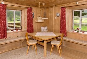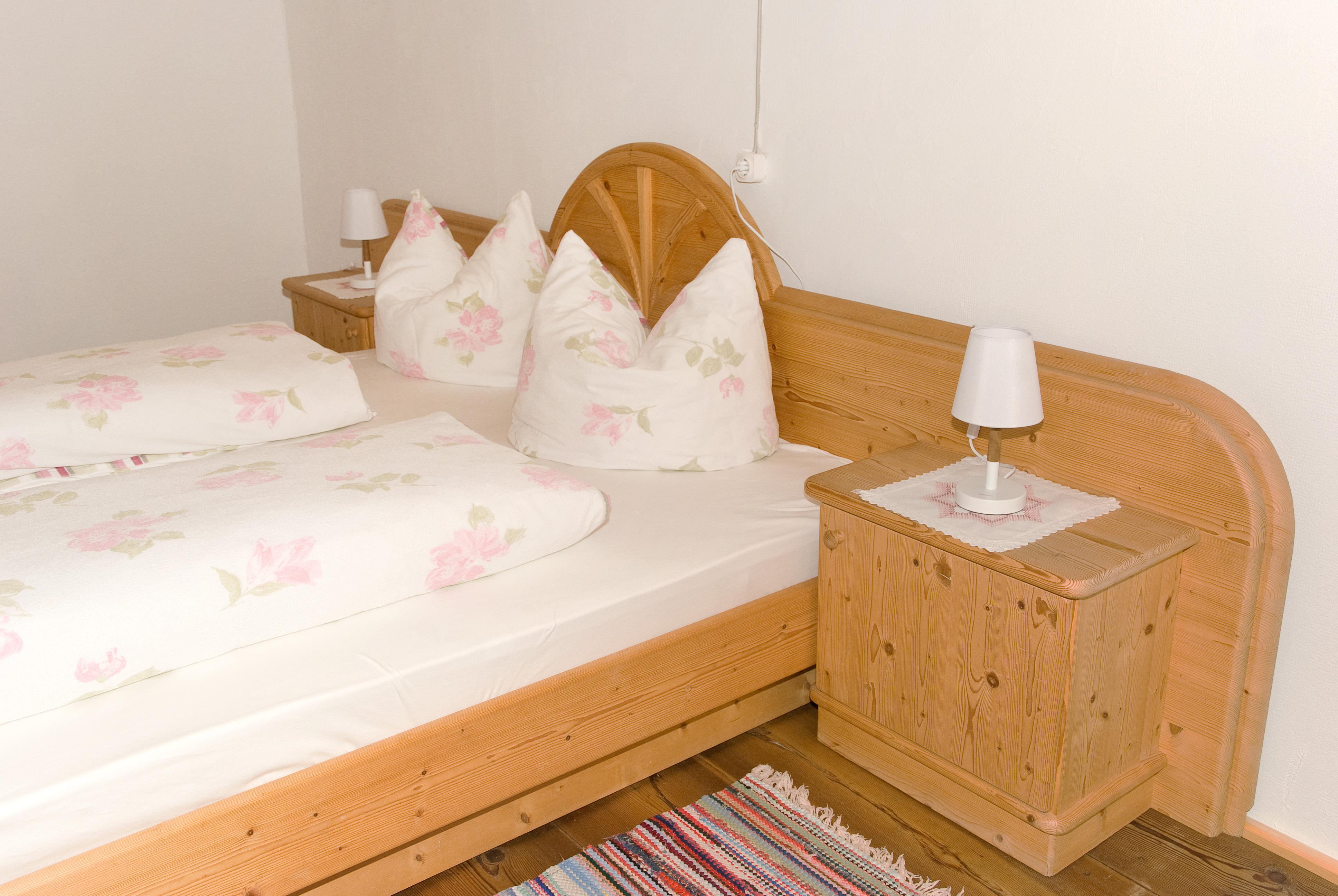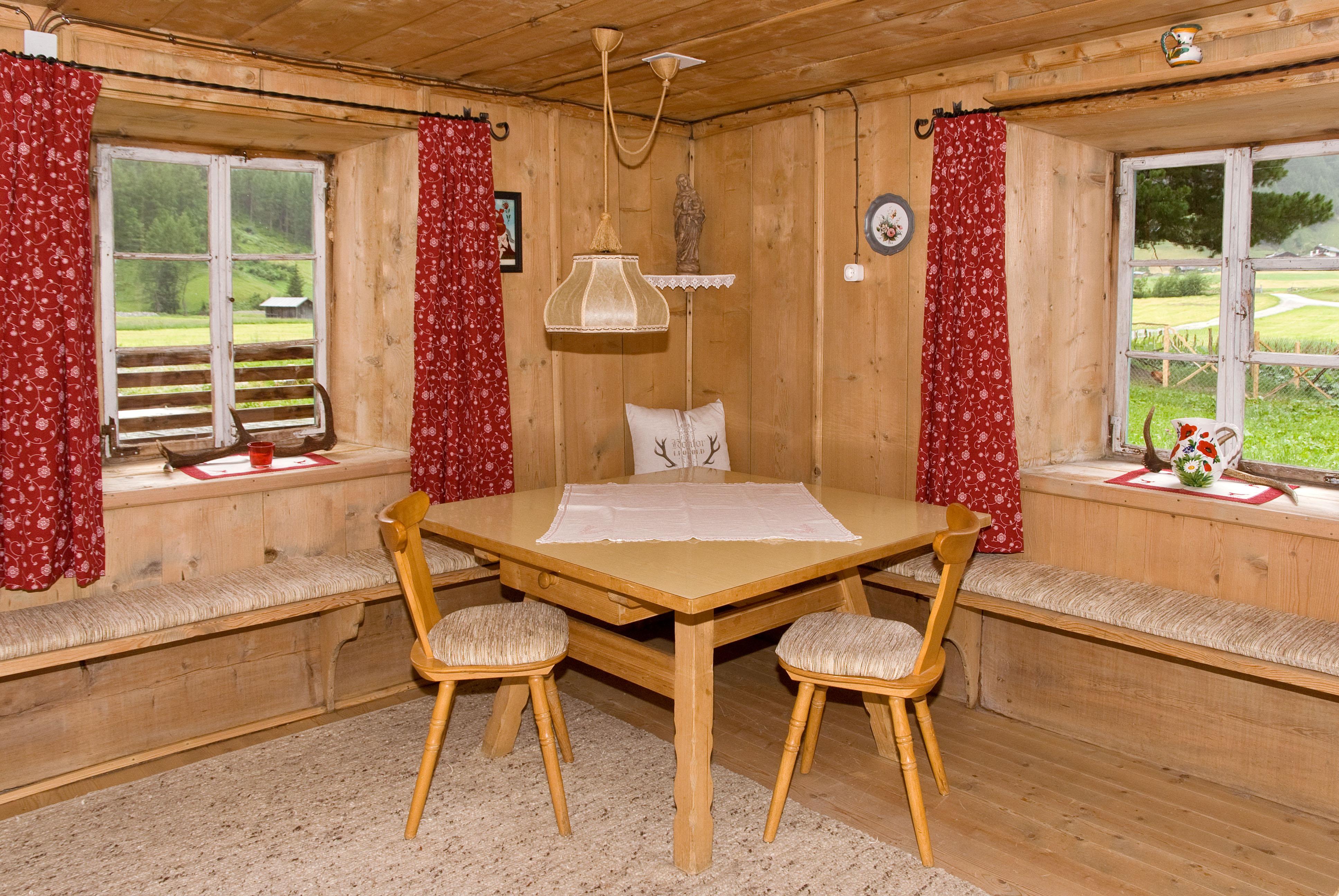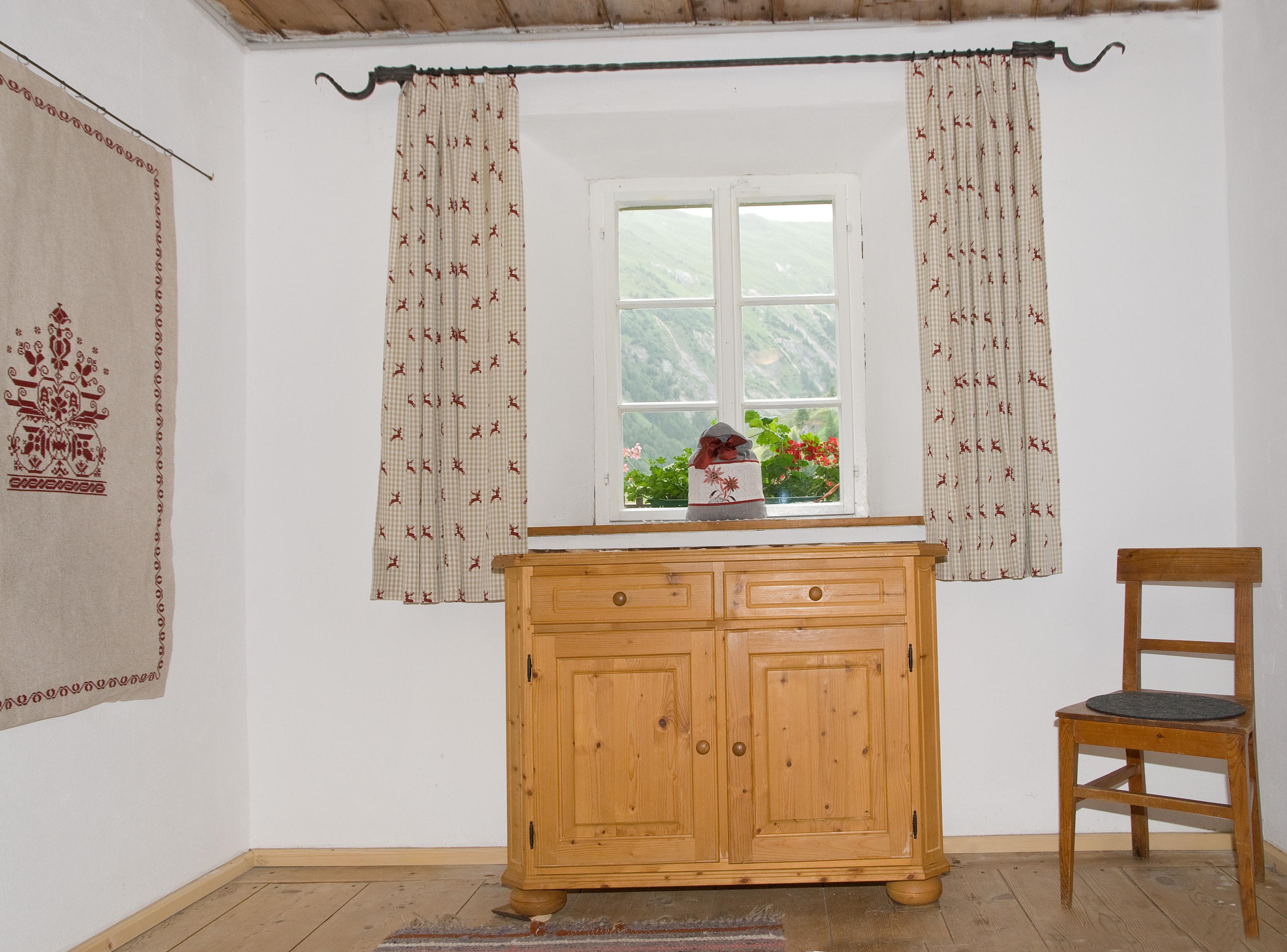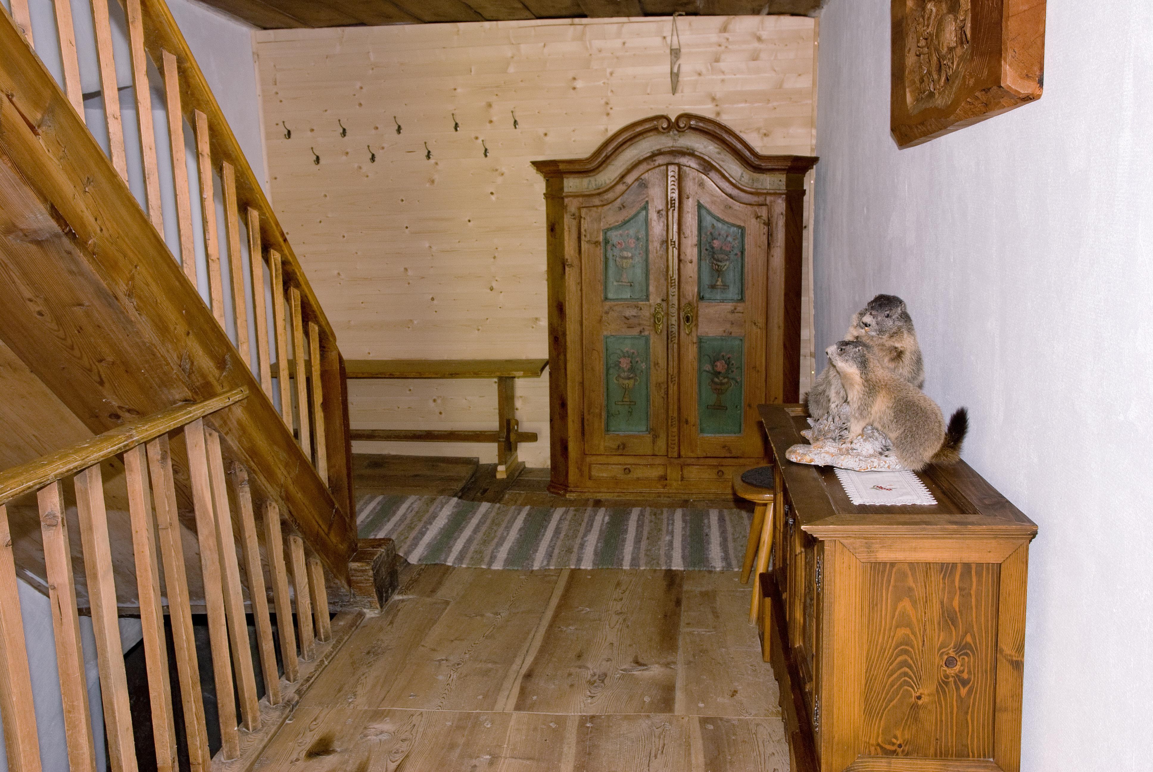 Unser altes Bauernhaus bietet Platz für bis zu 10 Personen in fünf Schlafzimmern, wovon sich eines im Erdgeschoss befindet. Neben der gut ausgestatteten Küche, ist das Highlight sicher die uralte Bauernstube, hier könnt ihr lange Abende auf der Ofenbank am warmen Kachelofen oder der gemütlichen Sitzecke genießen. Wie in alten Zeiten könnt ihr die Öfen einheizen und das Knarzen der alten Holzbalken hören. Bei schönem Wetter gibt es auch genug Platz draussen zu sitzen, oder wenn ihr mal keine Lust habt zu kochen, befindet sich der Alpengasthof Kasern nur ein paar Minuten entfernt, wo es leckere traditionelle Gerichte zu probieren gibt. Von Anfang Juni bis Mitte September melken wir unsere Milchkühe morgens und abends im hinteren Teil des Hauses und über Nacht bleiben die Kühe auch im angebauten Stall. Unsere Hühner versorgen euch gerne mit frischen Frühstückseiern, und in der Gegend gibt es zahlreiche Wildkräuter zum Sammeln.