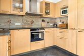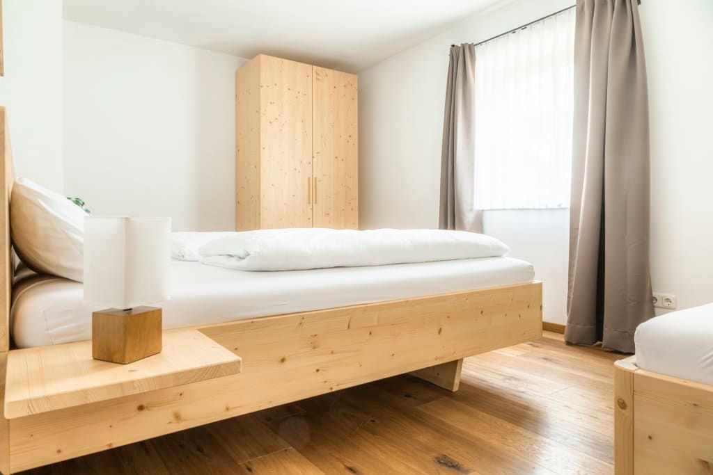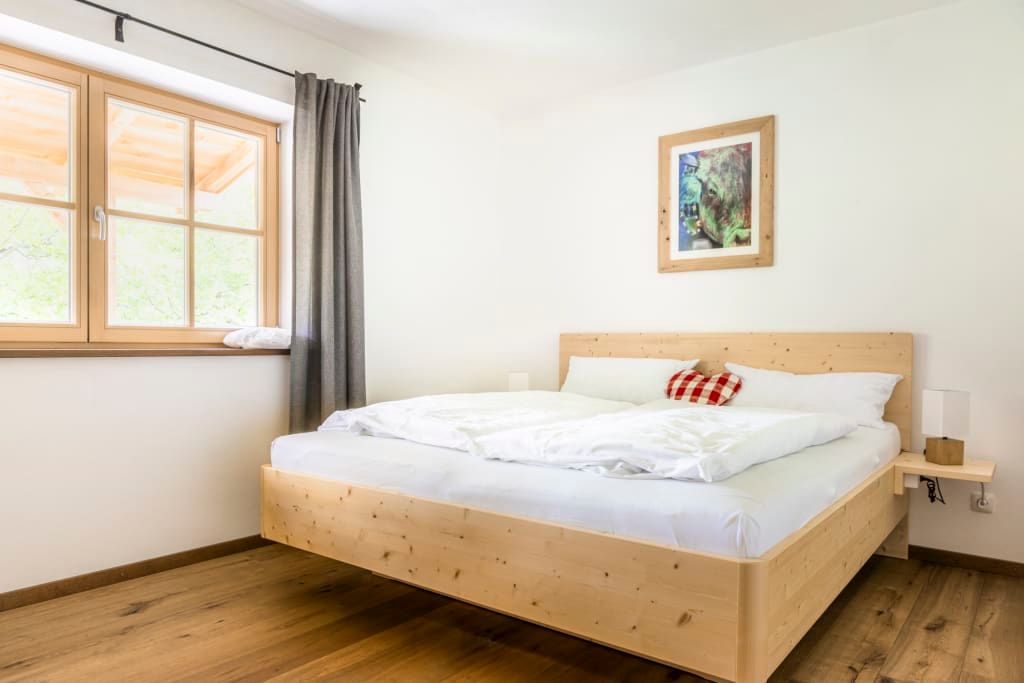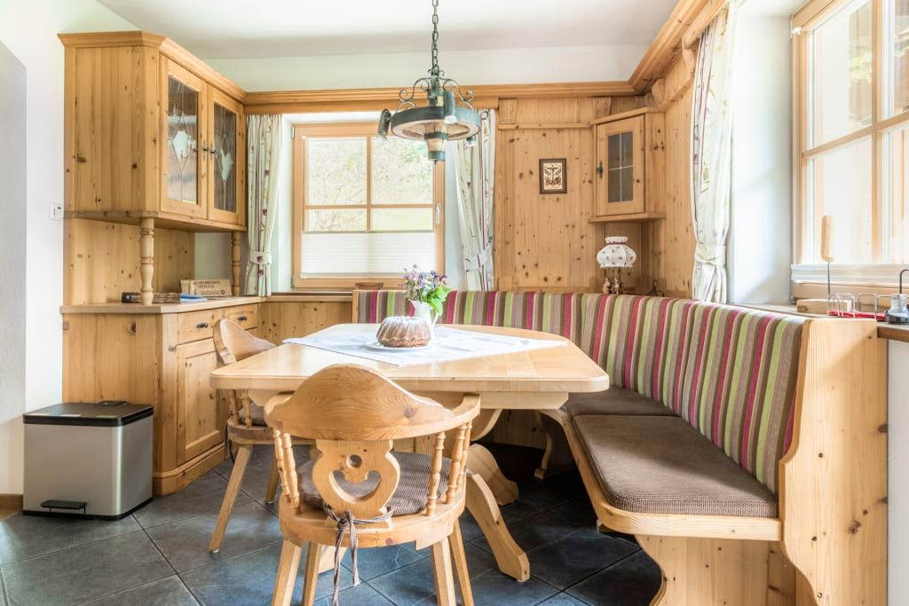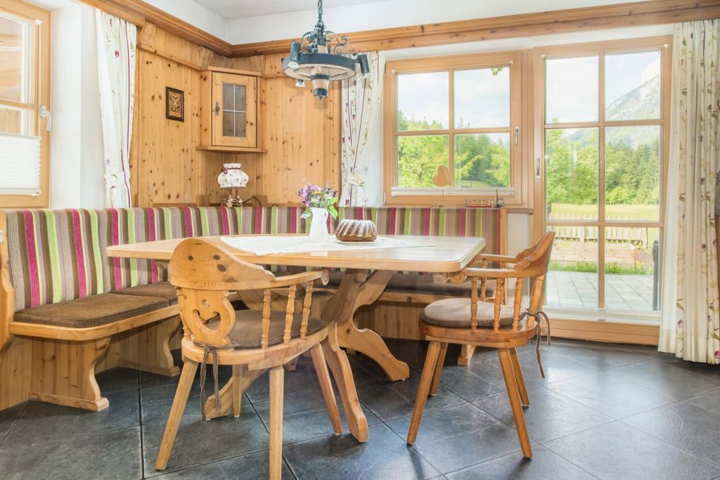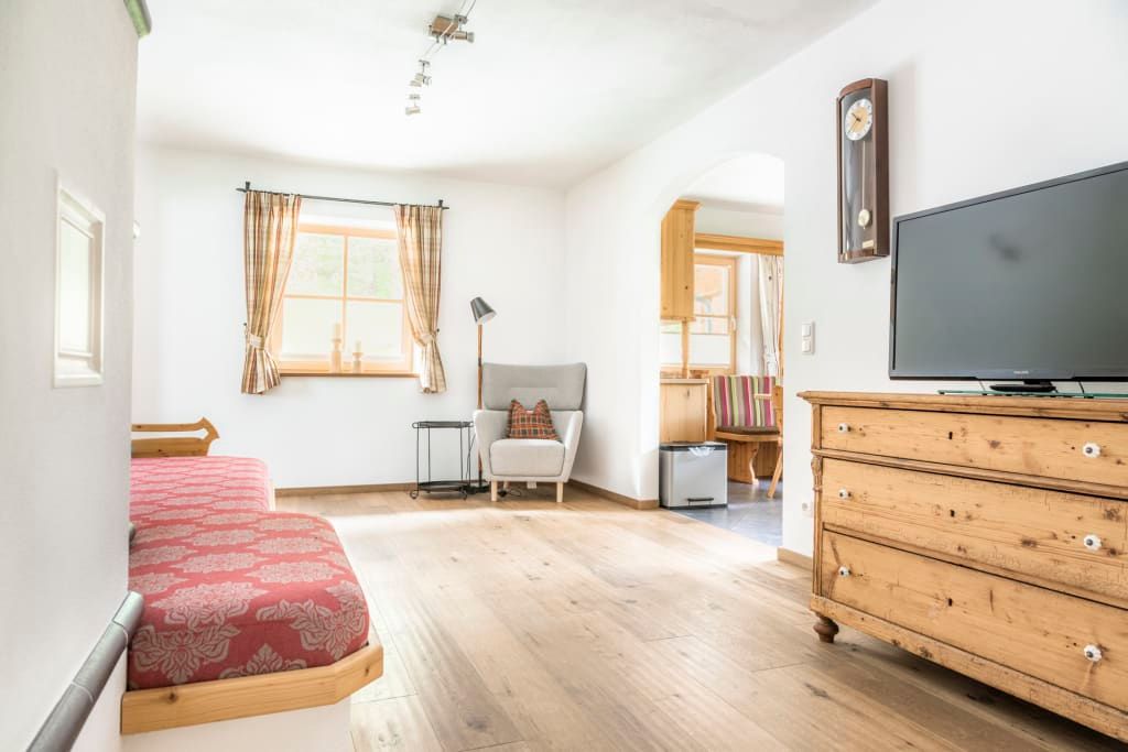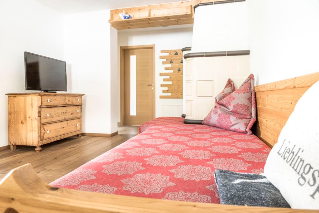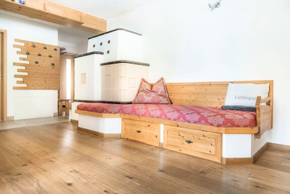 Die Wohnung ist sehr hochwertig mit einem Kachelofen, Echtholzböden und Massivholzmöbeln ausgestattet.