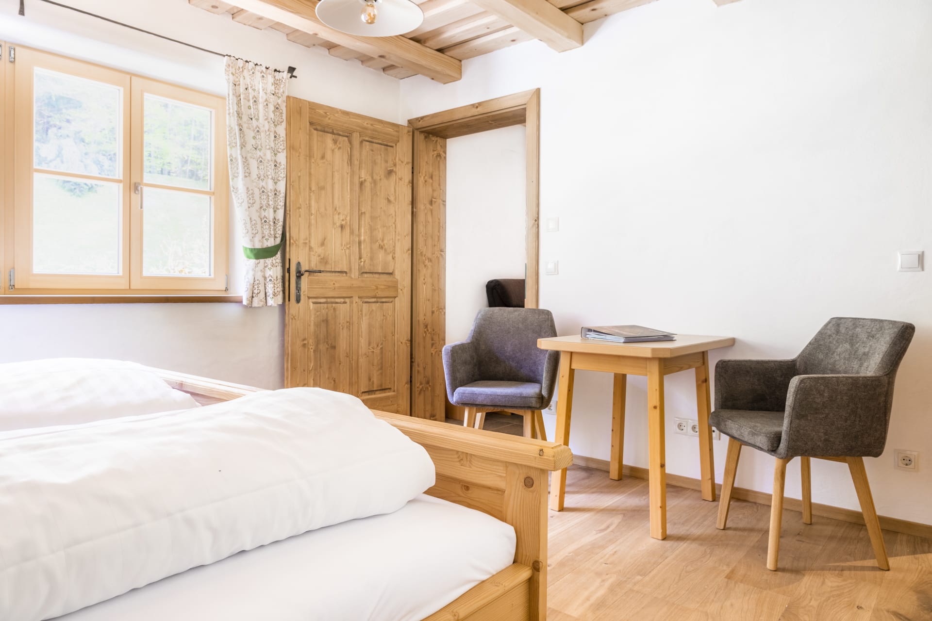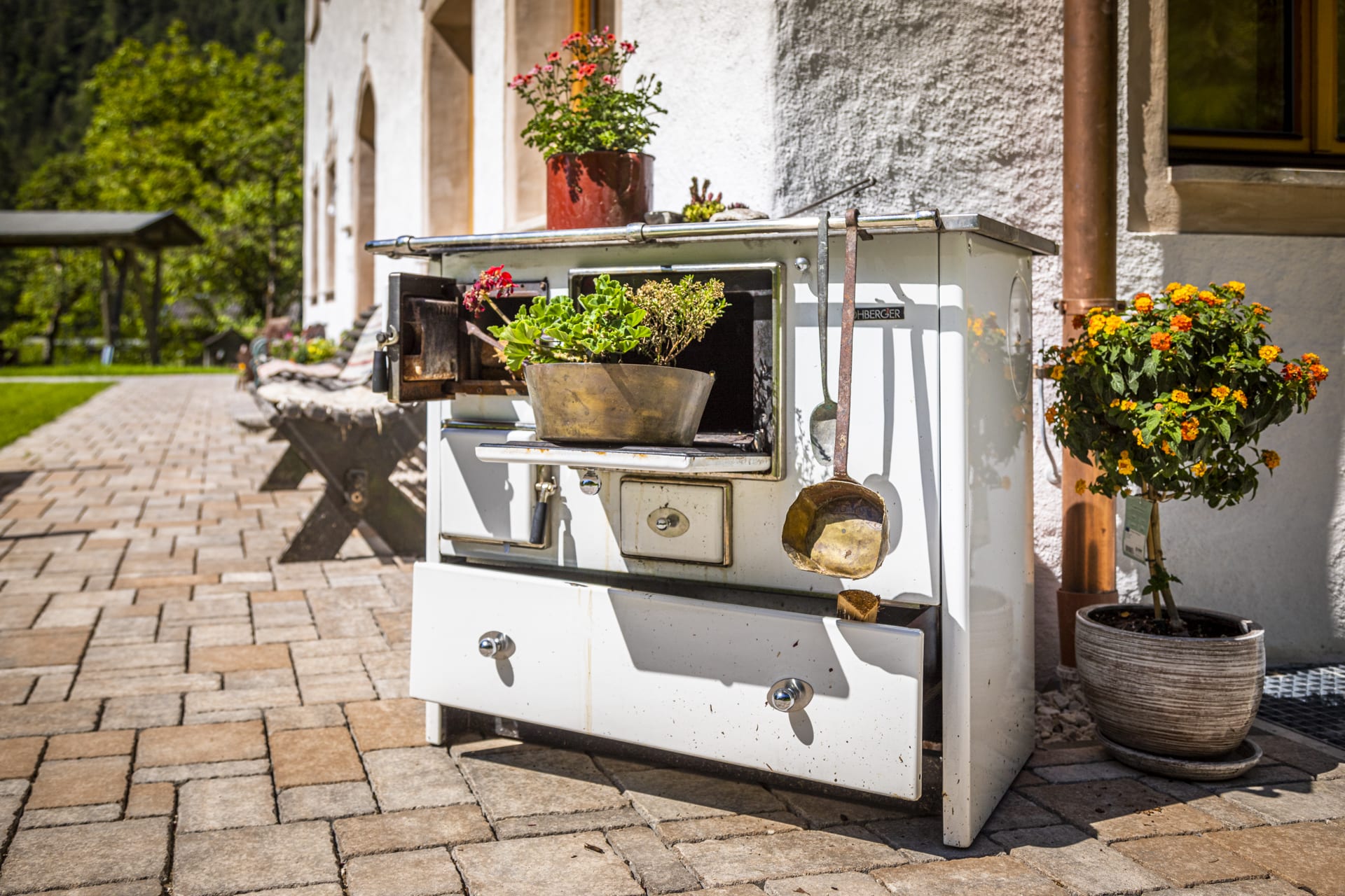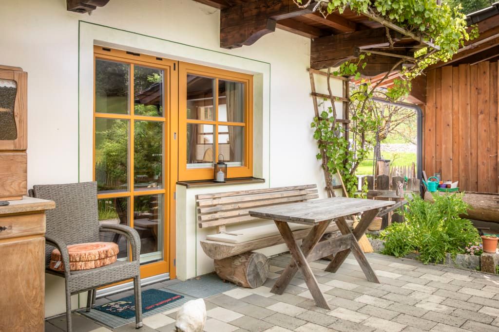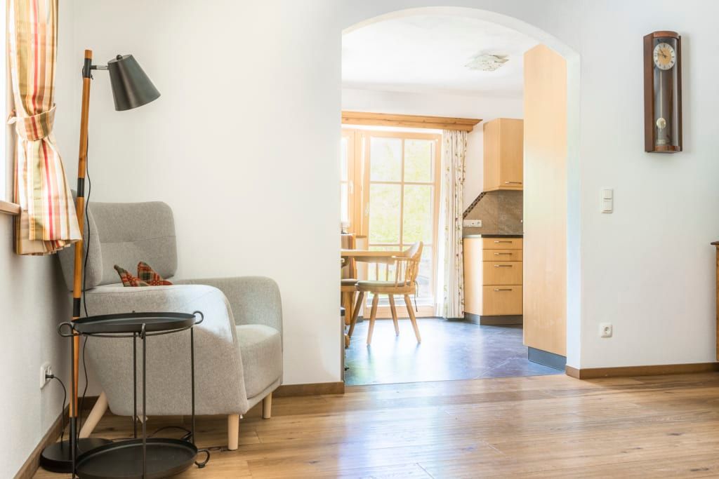 Die Wohnung befindet sich im Nebenhaus im Erdgeschoss und hat eine wunderbare Terasse, die diekt in den Bauerngarten führt.