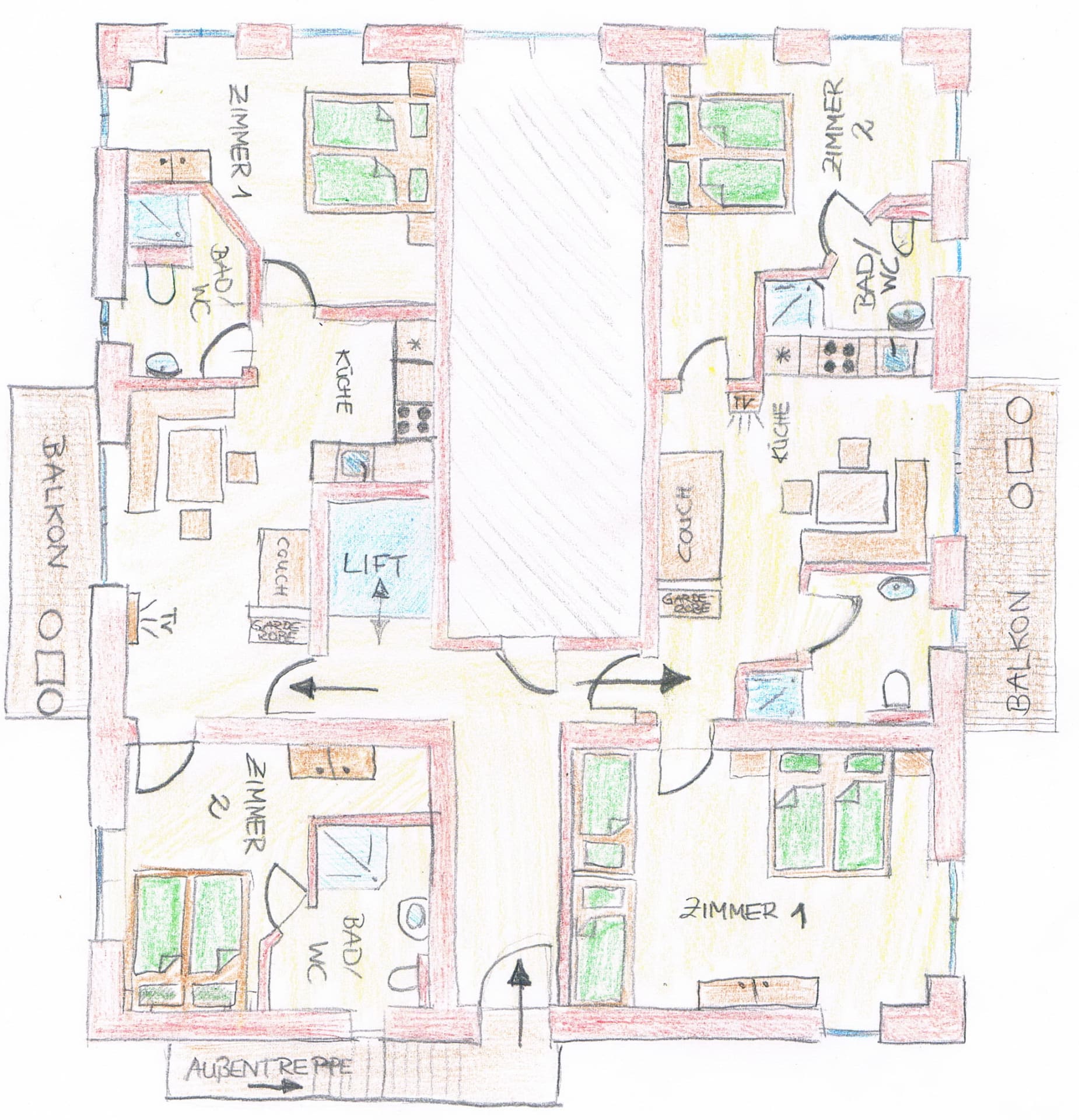 Die Wohnung bietet Platz für bis zu 5 Personen, hat zwei getrennte Schlafzimmer, ein Bad und seperates WC sowie einen Wohn- und Essbereich.
