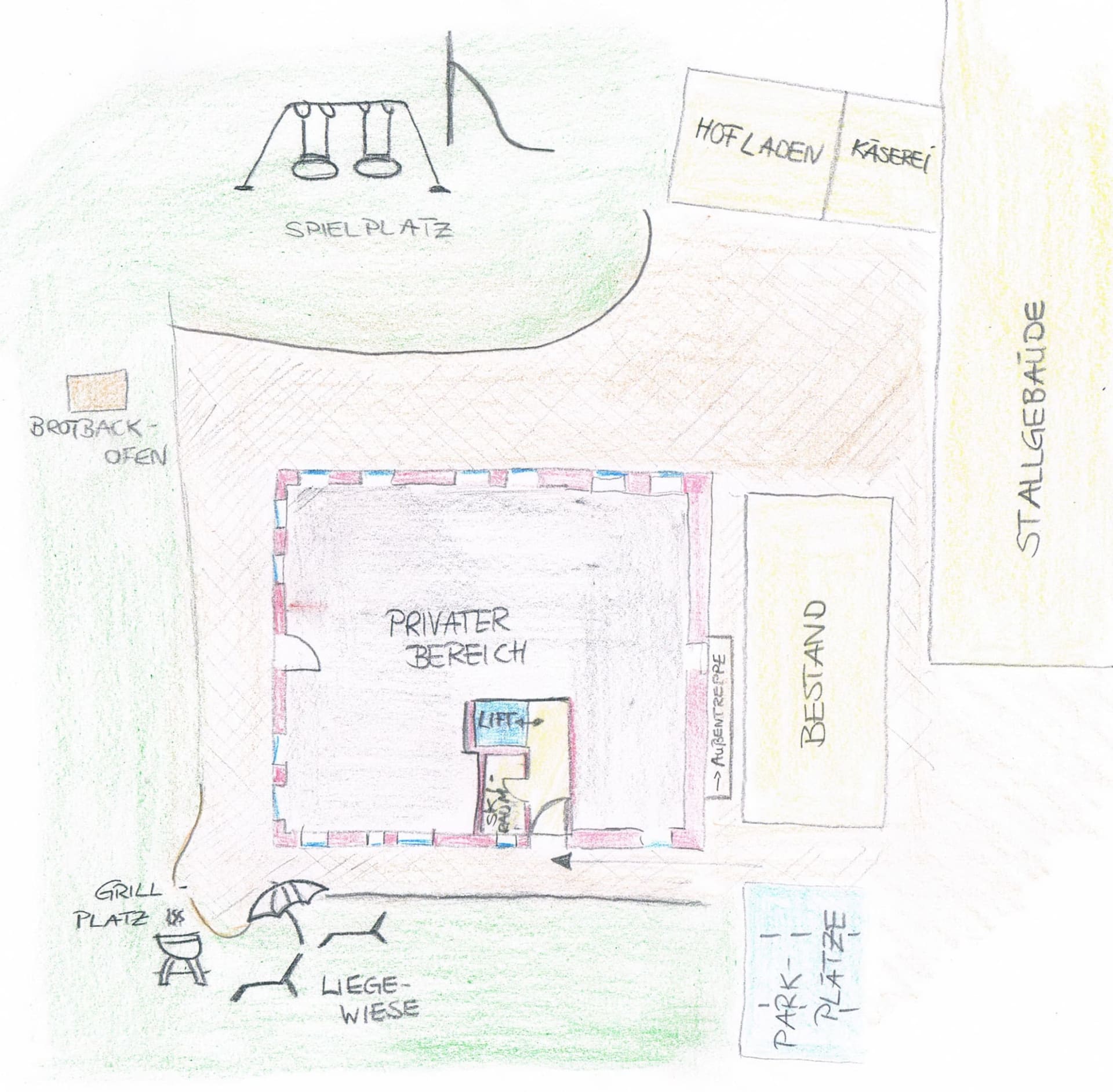 Für das leibliche Wohl gibt es bei uns am Hof erzeugte Produkte wie Milch, Butter, Käse, Eier und Fleisch.