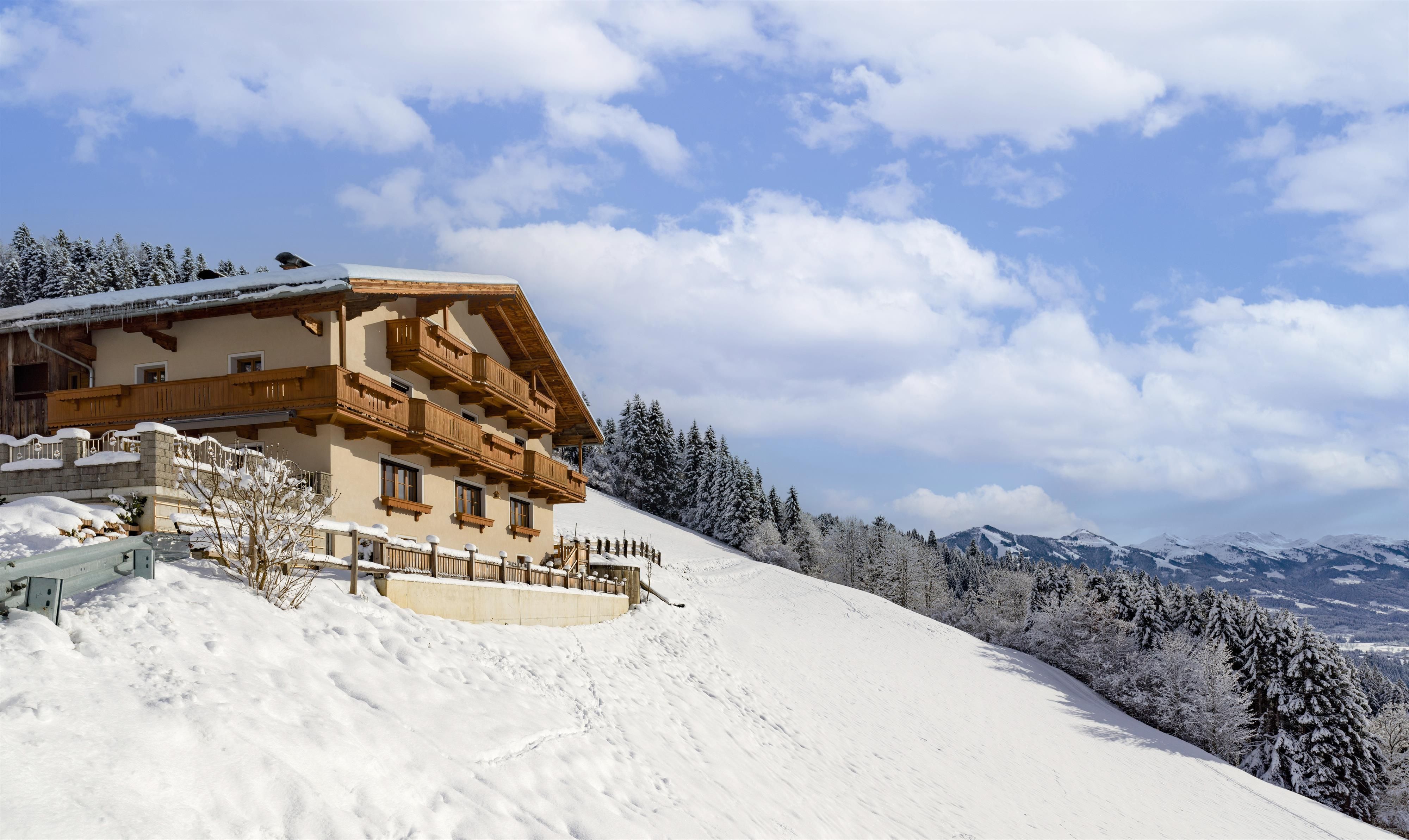 Auch im Winter können Sie Ihre Skitour oder Schneeschuh-Wanderung direkt vor der Haustüre starten. Gerne können Sie sich unsere Schneeschuhe direkt vor Ort kostenlos ausleihen.