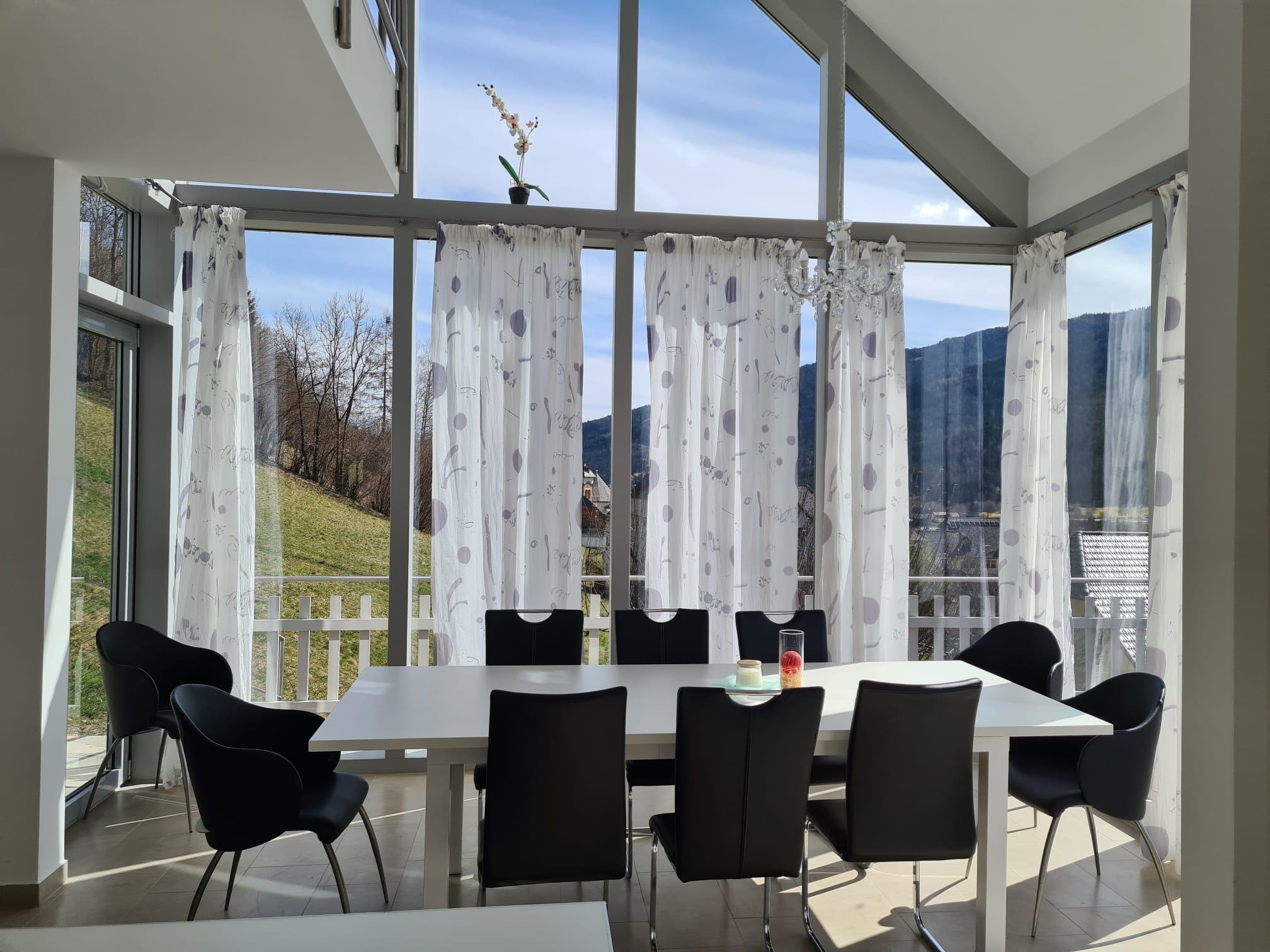 Der komfortable Wohn- und Essbereich bietet ein traumhaftes Panorama auf den Kreischberg und die umliegenden Berge. Hier werden sich unsere Gäste sehr wohlfühlen.