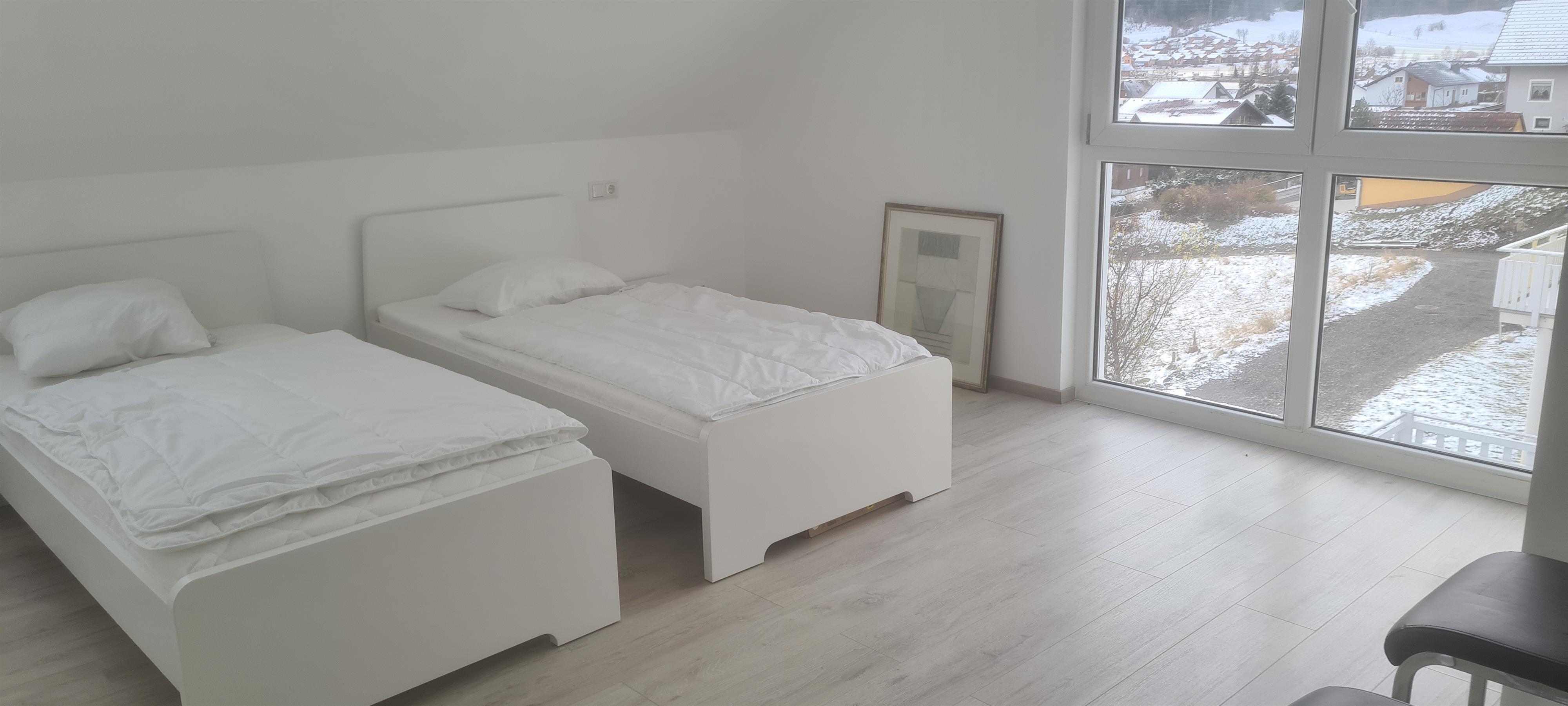 Geruhsame Nachtruhe finden unsere Urlaubsgäste in 4 Schlafzimmern für je 2 Personen. Dabei handelt es sich um 3 Schlafzimmer mit 2 Betten und 1 Schlafzimmer mit Etagenbett. Eine weitere Übernachtungsmöglichkeit bietet das kleine Schlafsofa auf der Galerie und das Schlafsofa im Wohnzimmer.