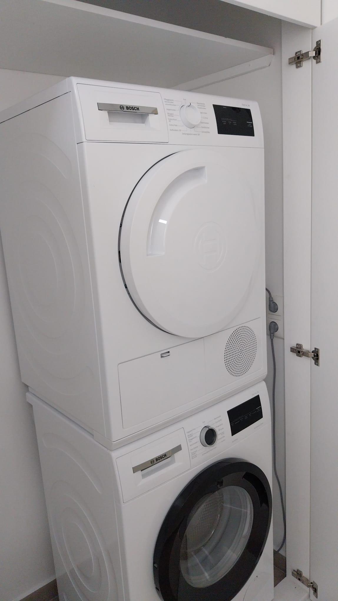 Zur technischen Ausstattung gehören ebenfalls WLAN, Waschmaschine und Trockner. Die Schlafzimmerfenster sind mit elektrischen Rollläden ausgestattet.