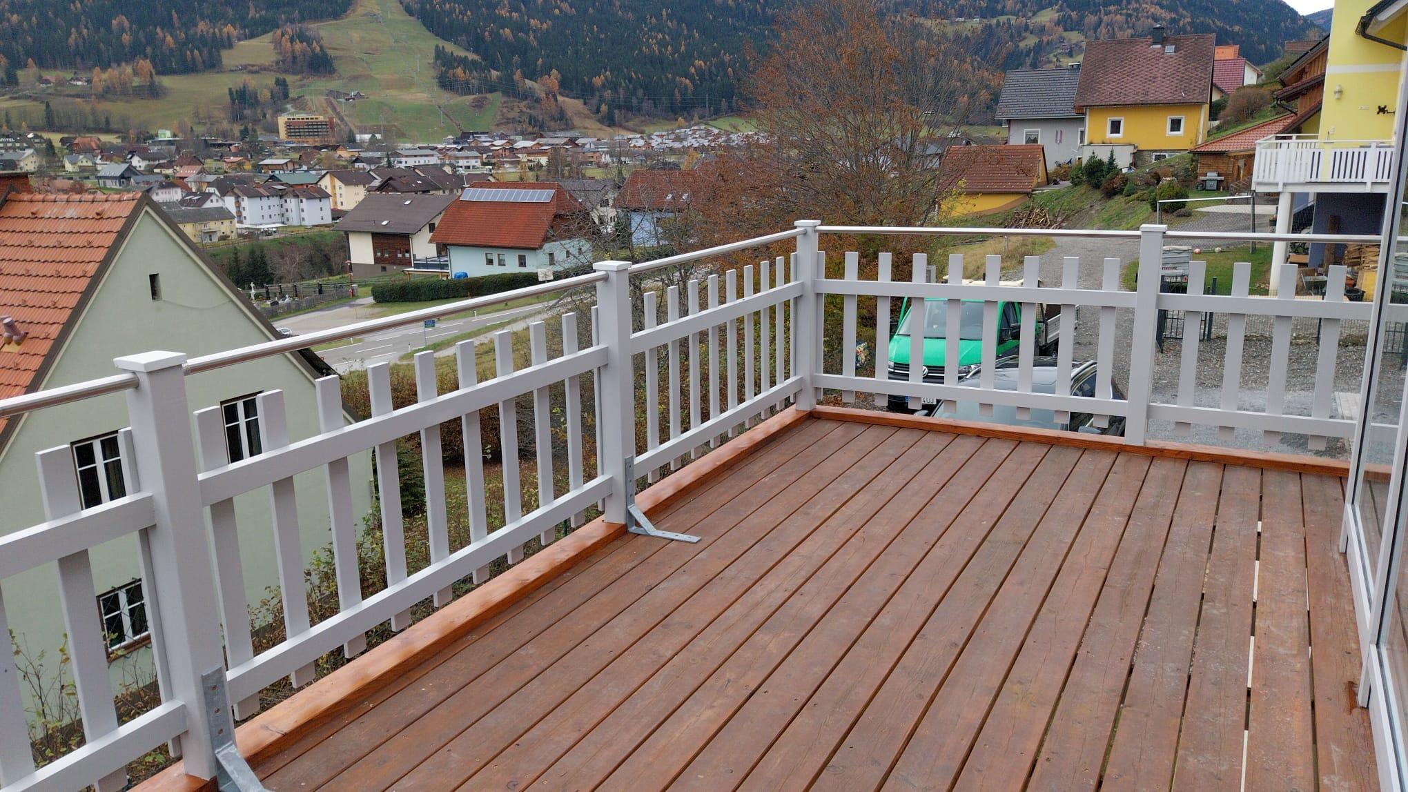 Vom Wohnzimmer aus hat man direkten Zugang zum Balkon. Ein ebenso traumhafter Bergblick bietet sich von der Ost- und Westterrasse.