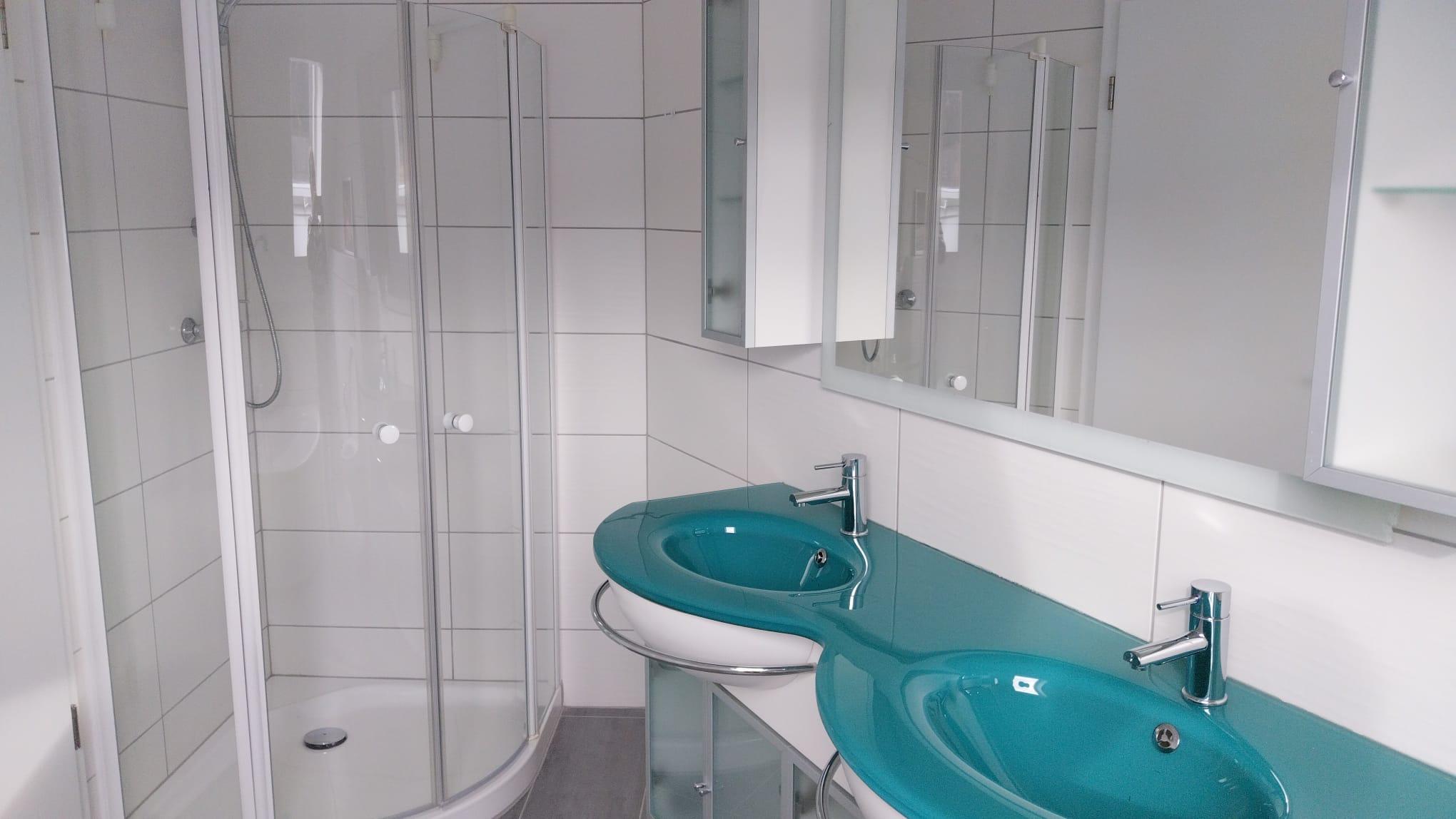 Zwei Schlafzimmer verfügen über je ein eigenes Badezimmer, eines über Badewanne, Dusche, WC und ein Doppelwaschbecken. Das 2. Schlafzimmer verfügt über Dusche, WC und Waschbecken. Die beiden anderen Schlafzimmer befinden sich auf dem gleichen Stockwerk wie das 3. Badezimmer, welches über Dusche, WC und Waschbecken verfügt.