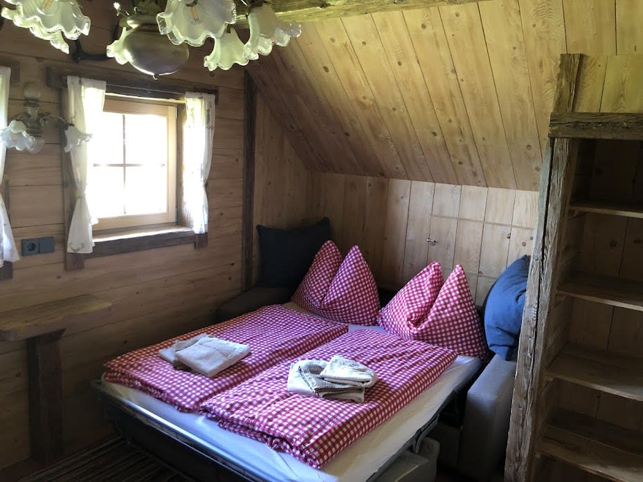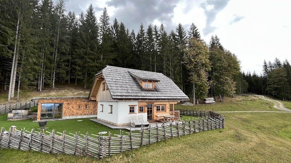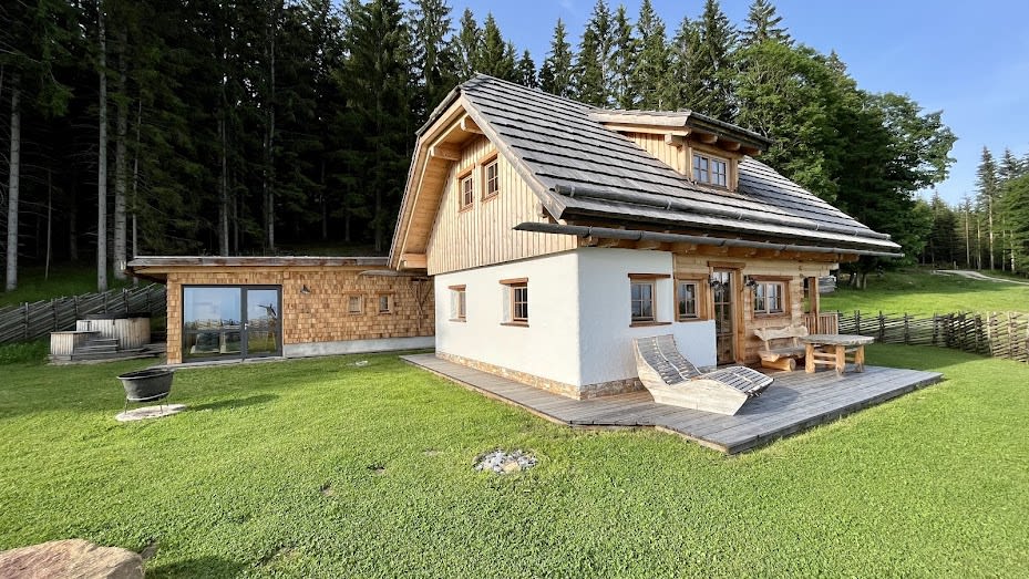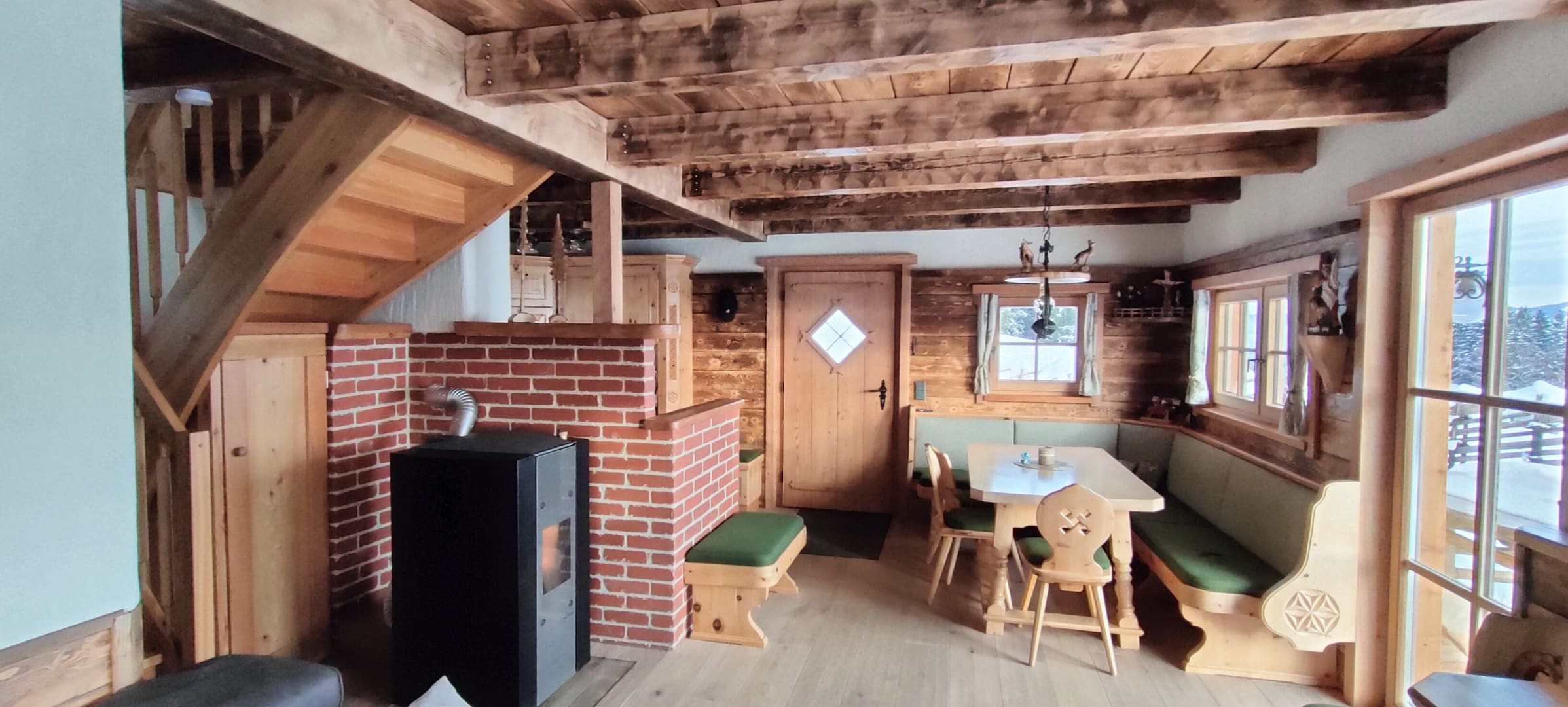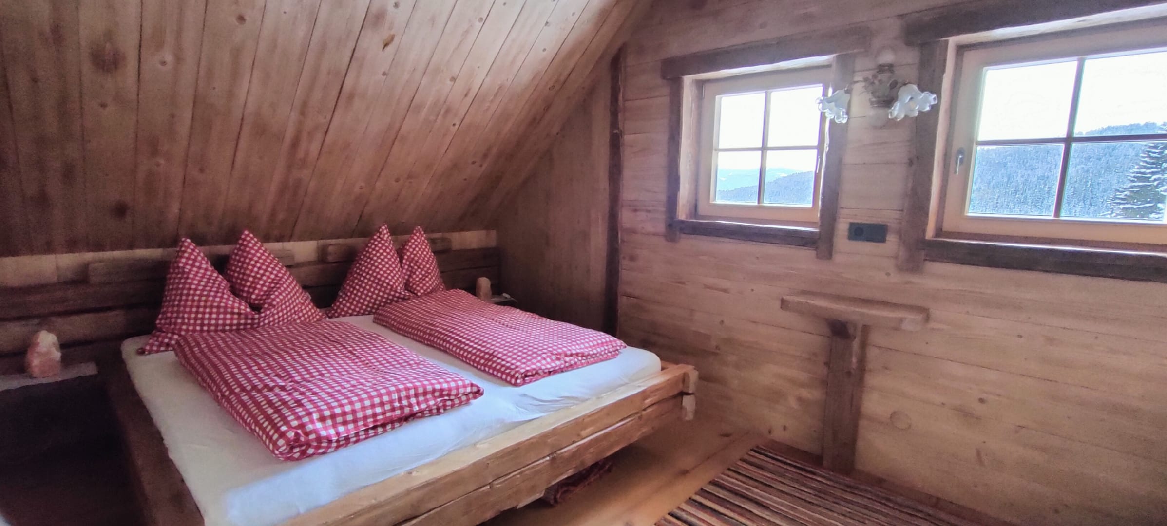 Von der neugebauten Almhütte aus hat man einen traumhaften Ausblick auf das gesamte Lavanttal und auf die herrliche Bergwelt. Außerdem überzeugt die Alleinlage mit ihren Sonnenstunden. Beim Bau der Hütte legten wir großen Wert auf natürliche Materialien. So wurde nur eigenes Holz von umliegendem Wald verwendet. Der Blockbau und Lehmputz sorgt für einen hervorragendes Raumklima. Bei der Einrichtung wurde sehr viel Herzblut ins Detail gelegt. Das ein besonderes Gefühl des Wohlfühlens sich schon beim Eintreten in die Hütte bereit macht.