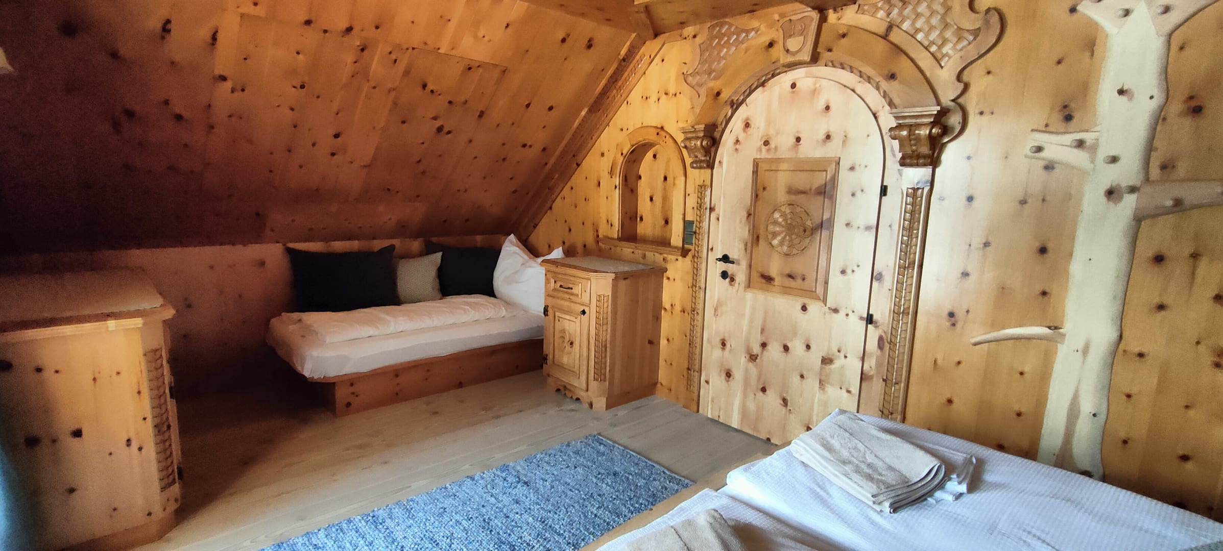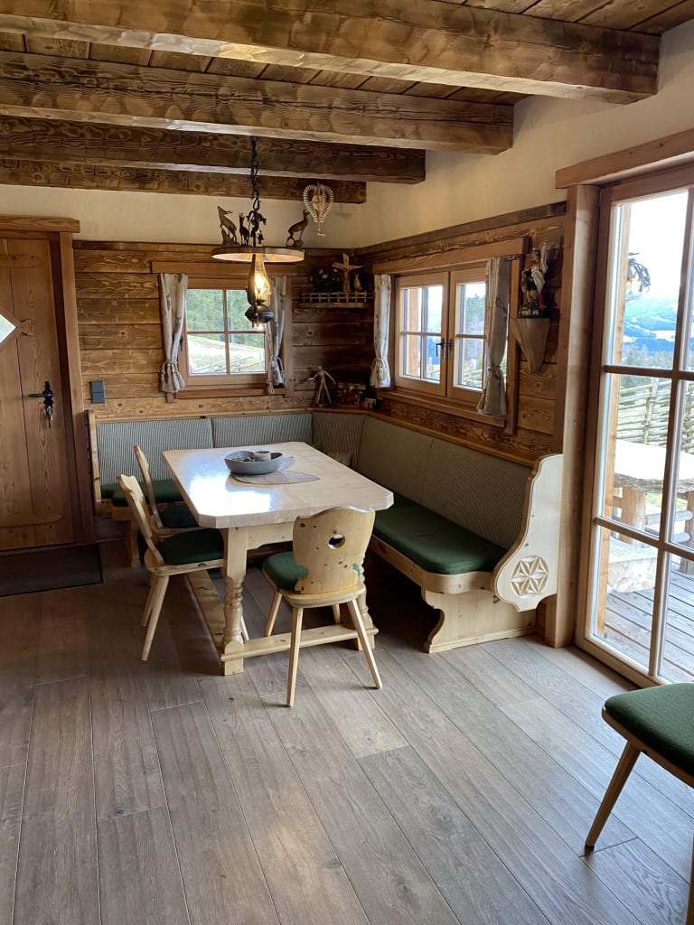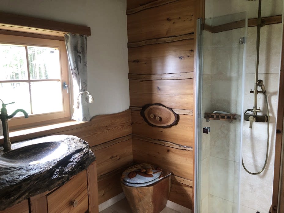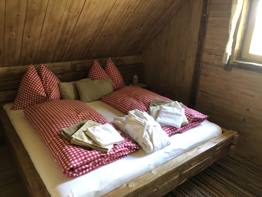 Von der neugebauten Almhütte aus hat man einen traumhaften Ausblick auf das gesamte Lavanttal und auf die herrliche Bergwelt. Außerdem überzeugt die Alleinlage mit ihren Sonnenstunden. Beim Bau der Hütte legten wir großen Wert auf natürliche Materialien. So wurde nur eigenes Holz von umliegendem Wald verwendet. Der Blockbau und Lehmputz sorgt für einen hervorragendes Raumklima. Bei der Einrichtung wurde sehr viel Herzblut ins Detail gelegt. Das ein besonderes Gefühl des Wohlfühlens sich schon beim Eintreten in die Hütte bereit macht.