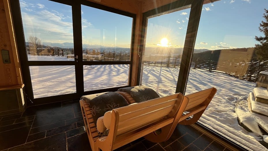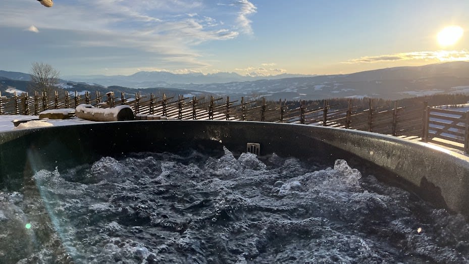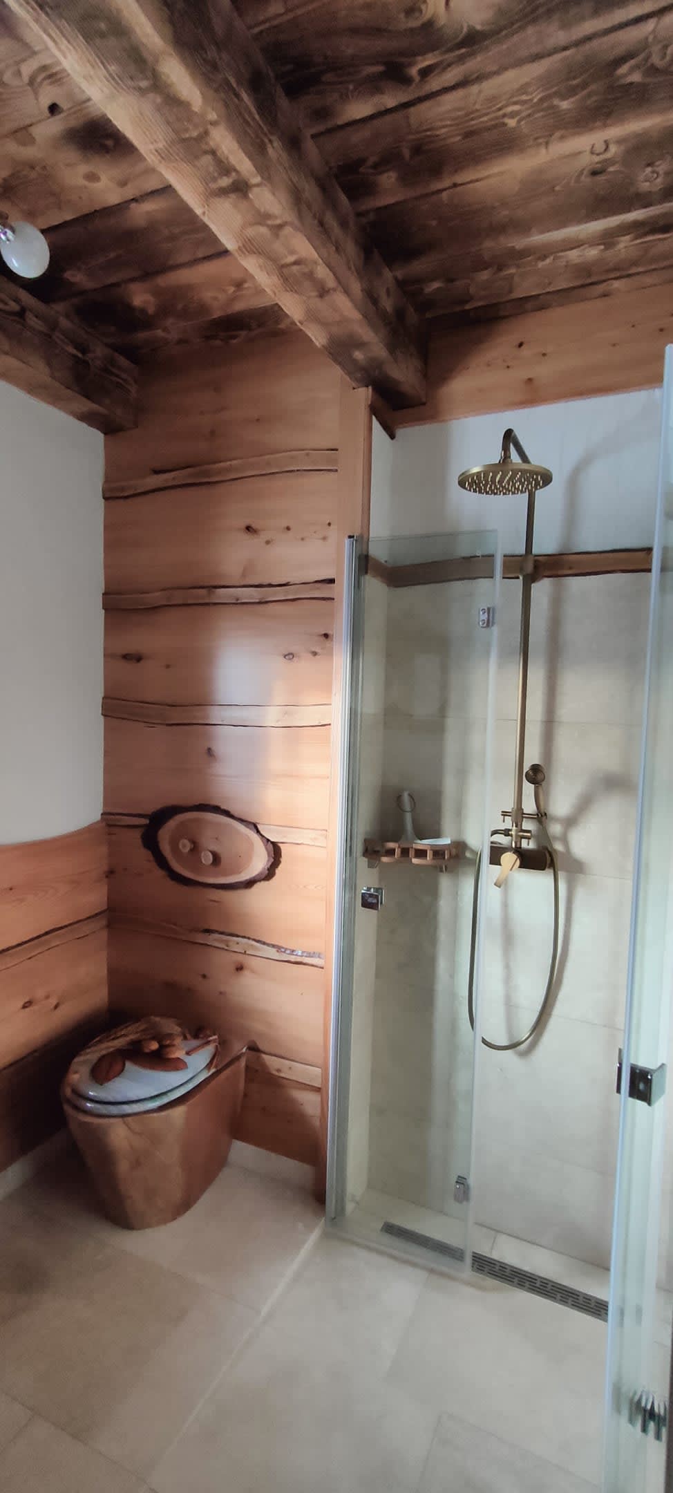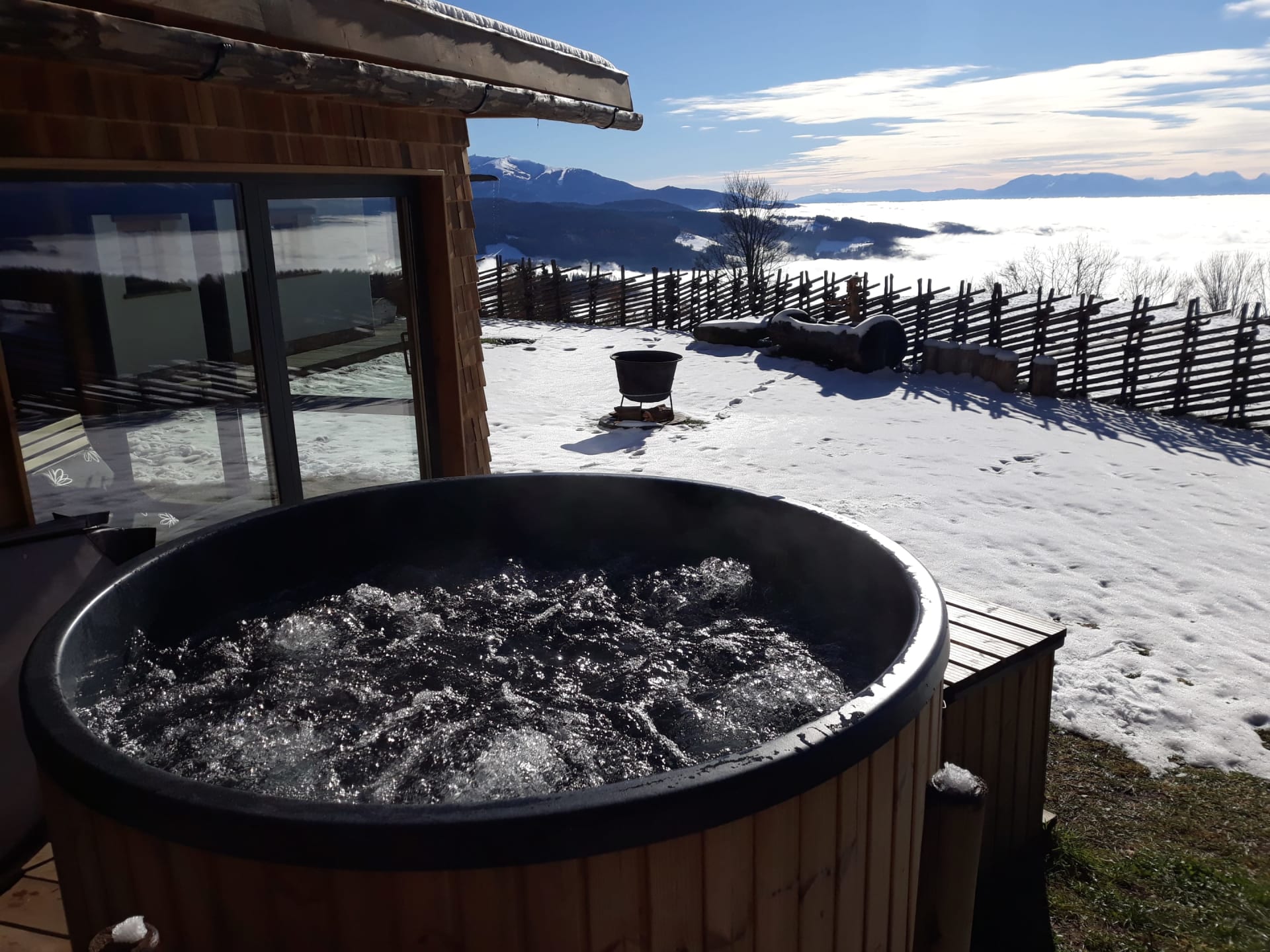 Küche und Wohnbereich befinden sich im Erdgeschoss, sowie auch das Badezimmer. Im Obergeschoss stehen 2 Schlafzimmer für bis zu 8 Personen zur Verfügung. Die Terrasse mit herrlichem Ausblick lädt mit Liegestühlen und einer Sitzgarnitur zum Verweilen ein. Im Sommer steht Ihnen einen Grillmöglichkeit bereit, sollte es etwas romantischer sein, so kann auch gerne die Feuerstelle genutzt werden. Im Nebengebäude befindet sich der Wellnesbereich,dort gibt es die Möglichkeit im privaten Outdoor Hot Tub zu entspannen, in der Zirbensauna zu saunieren und im Ruheraum mit Panoramafenster die Seele baumeln zu lassen. Die gesammte Hütte wird mit Sonnenstrom versorgt.