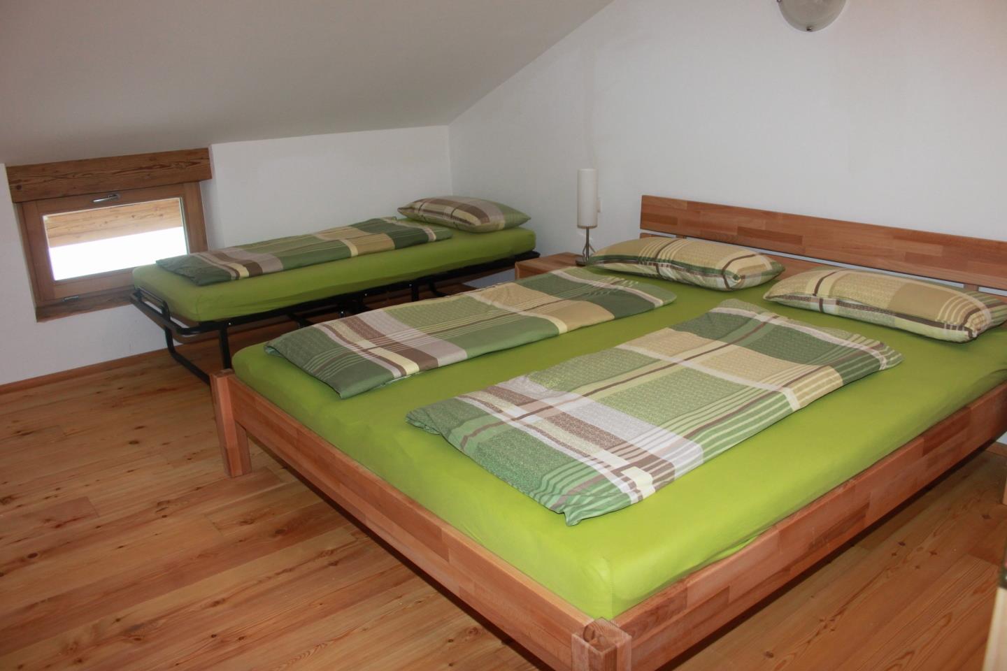 Über eine Altholzstiege gelangen Sie in die 2 Schlafzimmer mit jeweils Dachschrägen vom Bauernhaus. Die Zimmer sind jeweils mit einem Doppelbett ausgestattet und auf Wunsch sind Zustellbetten möglich.