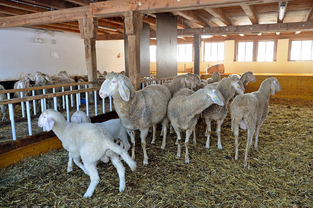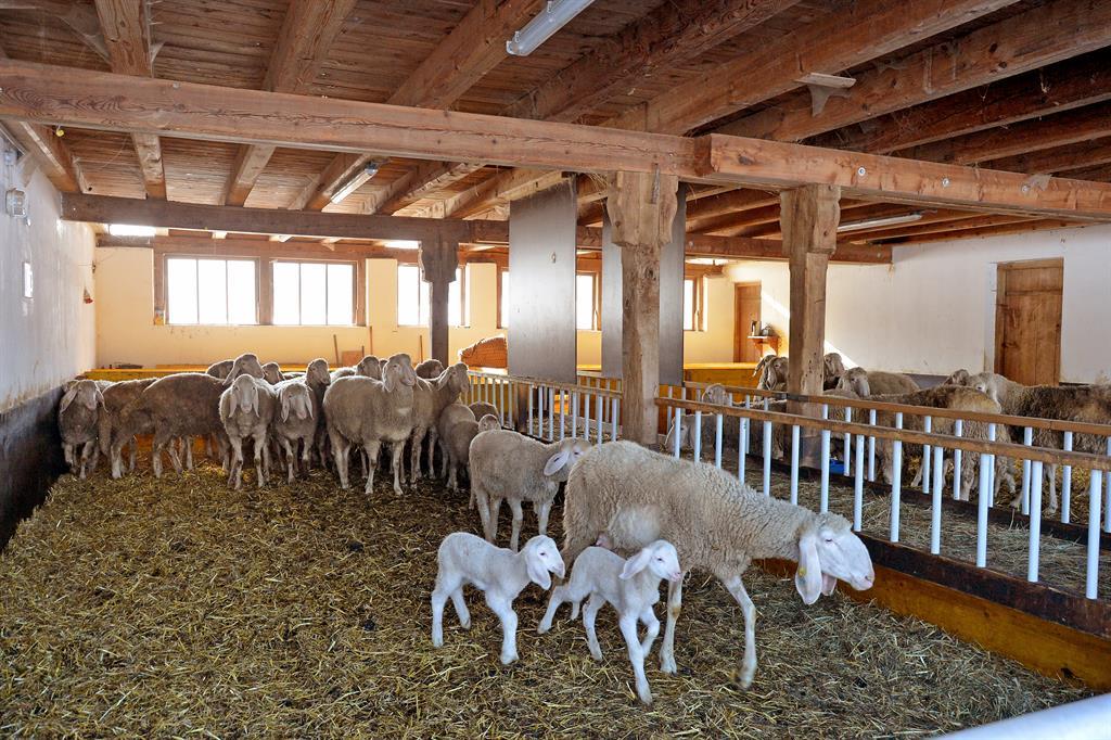 Bereits beim Hinaufgehen in die Wohnung können Sie unseren Schafen und Lämmern im Stall zusehen.
