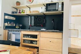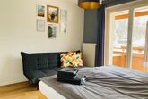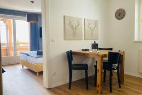Das Apartment 1 befindet sich im 1. Obergeschoss des Hauses. Es bietet auf ca. 38 m2 Platz für 2 Personen mit Kind.