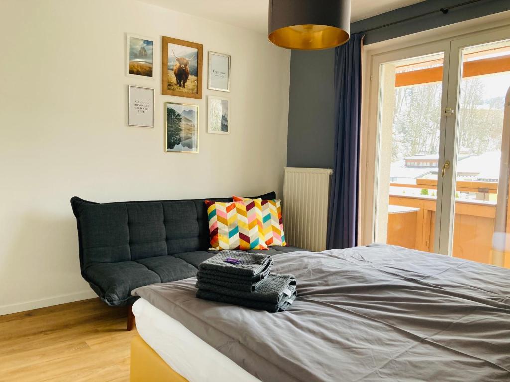 Das Apartment 3 befindet sich im 2. Obergeschoss unseres Hauses. Es bietet mit seiner Loggia einen traumhaften Ausblick auf den Zeller See und auf das ganze Skigebiet Zell am See-Kaprun. Auf den 103 m2 wohnst Du mit 6 - 8 Personen (2 Personen Schlafsofa) absolut gemütlich und modern- schick.
