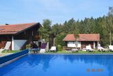 Im Außenbereich des Feriendorfes können Sie die weitläufige, grüne Anlage genießen, die zur gemeinschaftlichen Nutzung eingeladen ist. Der gemeinschaftliche Indoorpool ist ein Highlight, besonders für Familien mit Kindern oder für diejenigen, die auch im Urlaub nicht auf ihre täglichen Bahnen verzichten möchten. Ein zusätzlicher Außenpool mit Liegewiese verspricht Entspannung und Spaß in den warmen Monaten. Zudem gibt es für die kleinen Gäste einen Spielplatz und eine Tischtennisplatte, was keine Langeweile aufkommen lässt.
