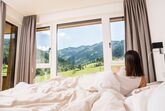 Der Wellnessbereich am Dach mit Panormasauna, Ruheliegen und Sonnenterrasse verspricht erholsame Momente.