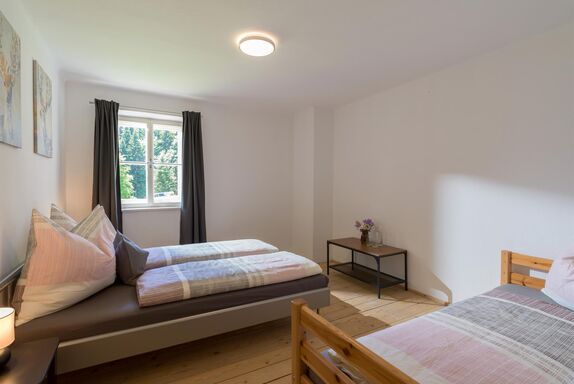 - Stube mit Kachelofen und Sofa mit Schlafmöglichkeit