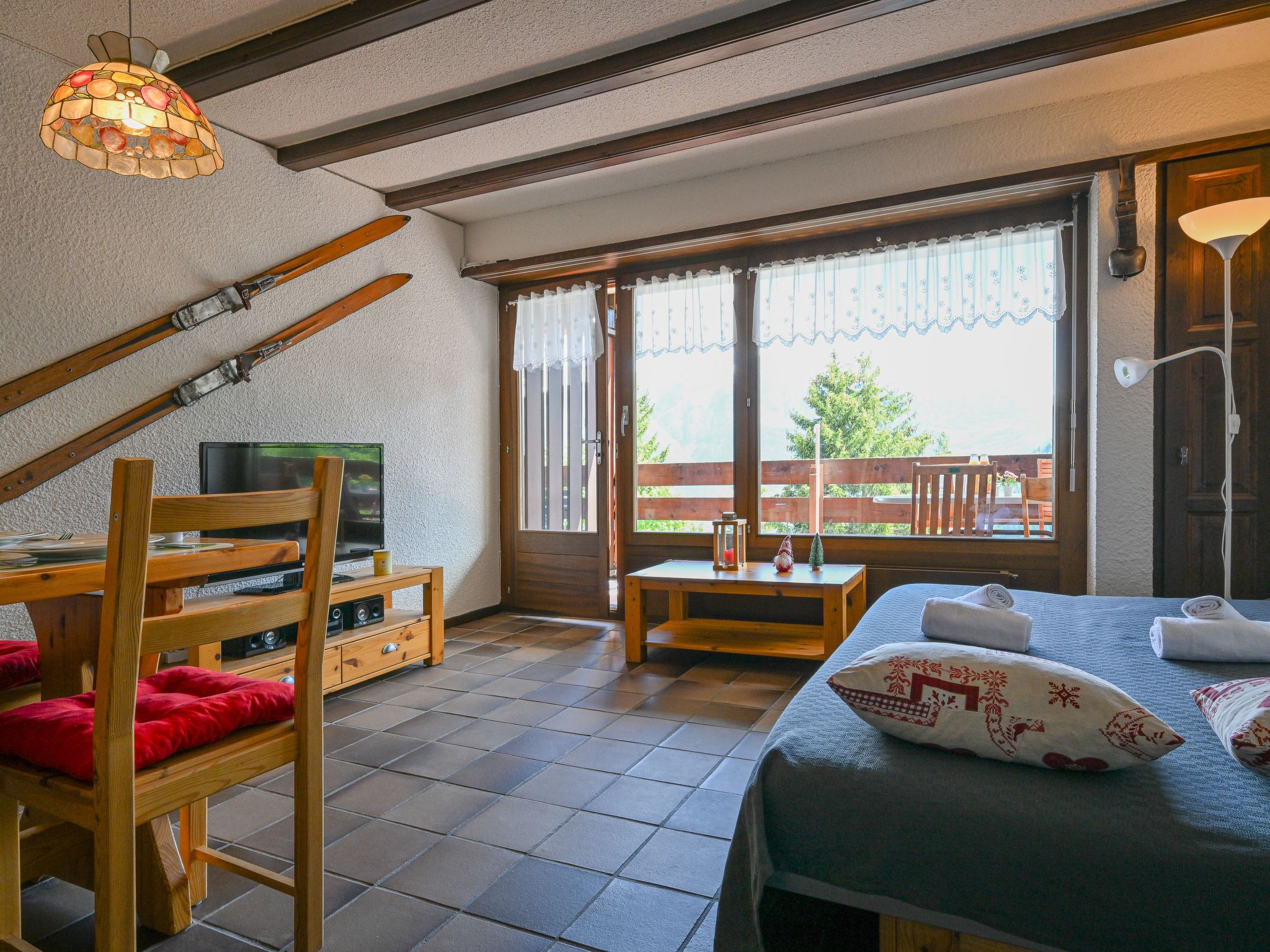 Centaure B 103, 2-Zimmer-Wohnung 42 m2 im 3. Stock, Südostlage. Zweckmässig und komfortabel eingerichtet: Wohn-/Esszimmer mit 1 Doppeldiwanbett (190 cm, Länge 200 cm), Kabel-TV (Flachbildschirm), Radio. Ausgang zum Balkon, Richtung Südosten. 1 Zimmer mit 1 franz. Bett (160 cm, Länge 200 cm). Ausgang zum Balkon, Richtung Südosten. Kochnische (4 Kochplatten, Backofen, Geschirrspüler, 4 Glaskeramikplatten, Wasserkocher, Mikrowelle, elektrische Kaffeemaschine, Kapseln für die Kaffeemaschine (Nespresso) extra, Racletteofen, Fondue Set (Käse)) mit Esstisch. Bad/WC. Balkon 12 m2, Südostlage. Balkonmöbel. Sehr schöne Sicht auf die Berge und das Tal. Zur Verfügung: Bügeleisen, Haartrockner. Internet (Wireless LAN, gratis). Garage Nr. 103, Höhe 180 cm, Breite 320 cm. Bitte beachten: Nichtraucher-Unterkunft. Maximal 1 Haustier/Hund erlaubt.