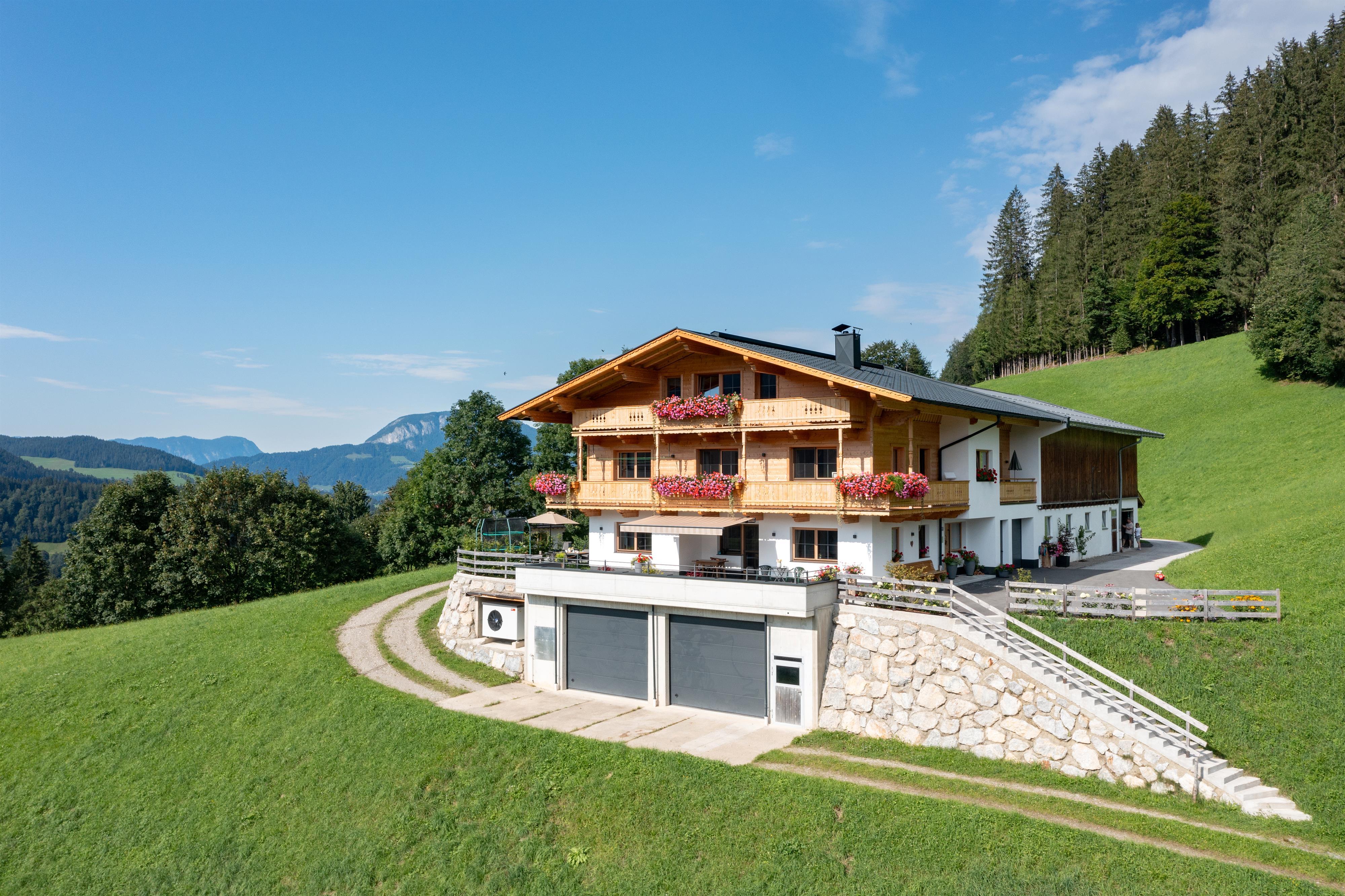 Unser im Jahr 2021/2022 neu errichteter Bauernhof liegt auf circa 900 Meter Seehöhe inmitten der Kitzbüheler Alpen am Hopfgartner Glantersberg.