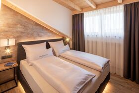 Dieses geräumige Penthouse ist perfekt für einen luxuriösen und komfortablen Aufenthalt in unserer Berglandschaft. Die Einrichtung des Zimmers ist modern und elegant und verbindet traditionelle Alpenakzente mit zeitgemäßen Designelementen. Das Zimmer verfügt über ein bequemes Queensize-Doppelbett, eine komfortable Schlafcouch und ein weiteres Schlafzimmer mit Einzelbetten. Die Sauna schafft eine gemütliche Atmosphäre und ist perfekt für kühle Abende. Dieses luxuriöse Alpenstil-Penthouse bietet den perfekten Rückzugsort für Paare oder Familien, die das Beste aus den Bergen erleben möchten. Erleben Sie den ultimativen Komfort und Luxus in diesem atemberaubenden Zimmer!