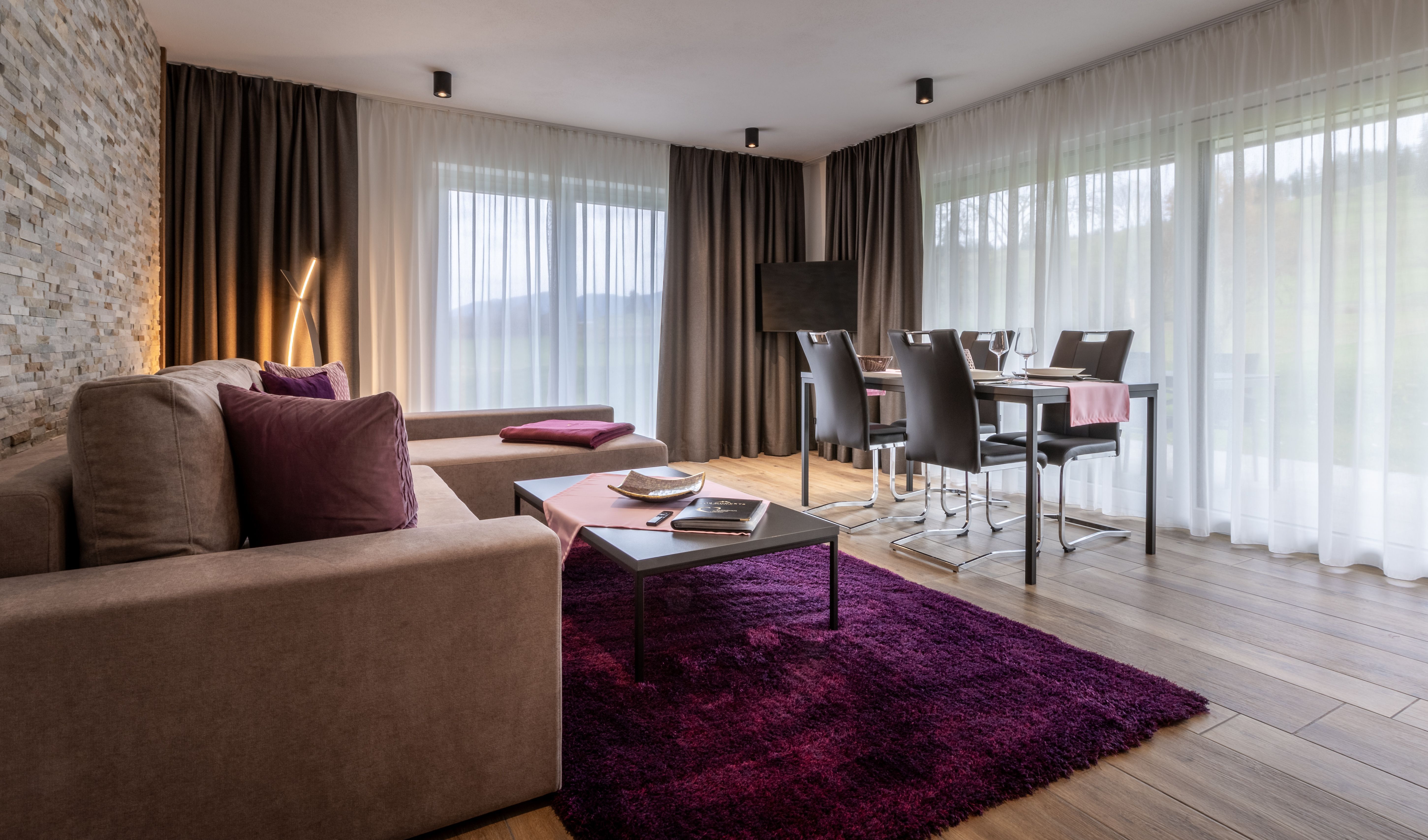 In modern alpenstyle eingerichteten Appartements in 4 Kategorien logieren Sie vor unberührter Natur direkt am Kurpark von Roßhaupten. Der Wellnessbereich und der beheizte Außenpool (Weihnachtsferien) laden Sie zu ''unvergesslichen Momenten'' ein.