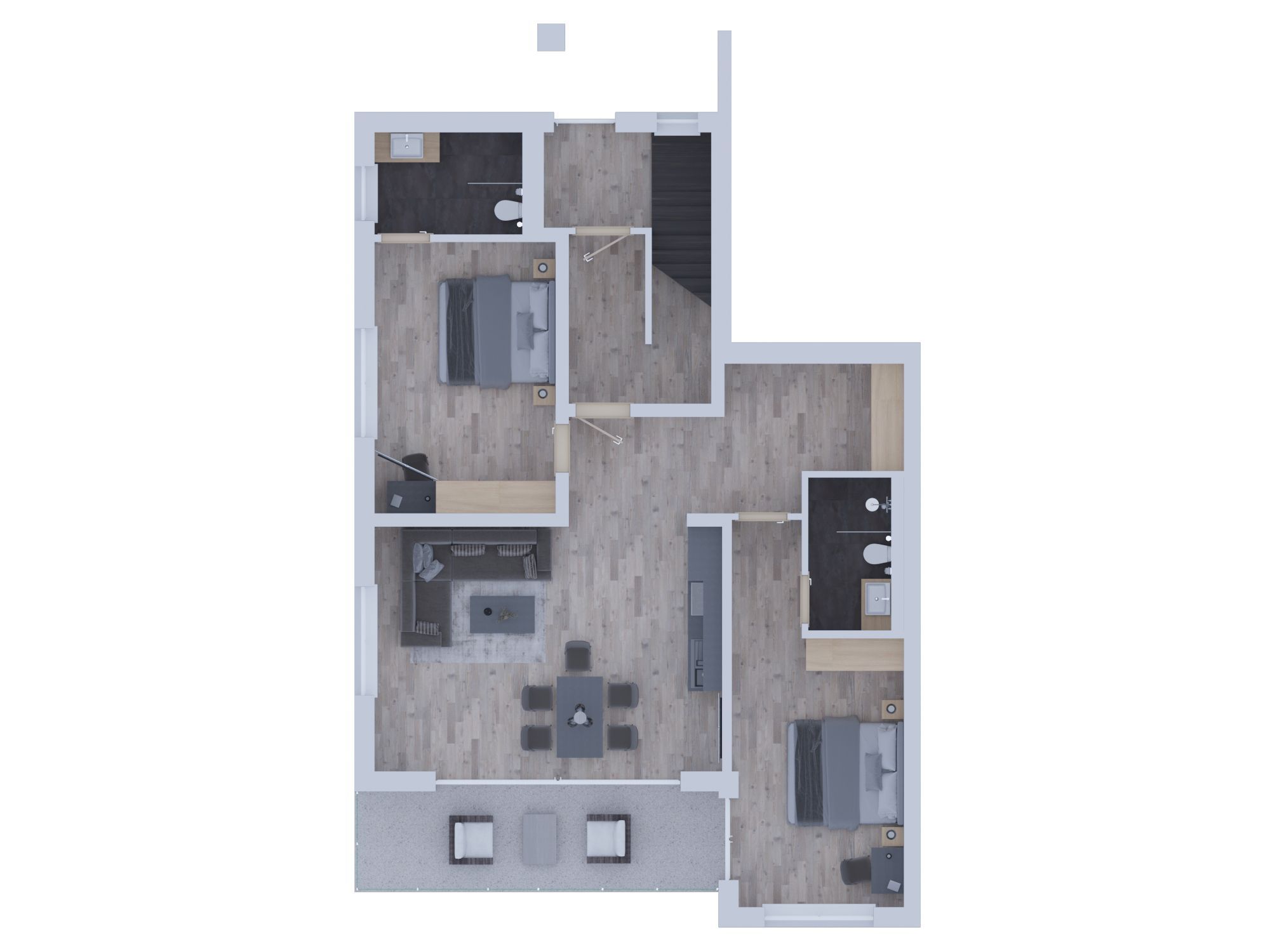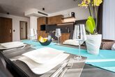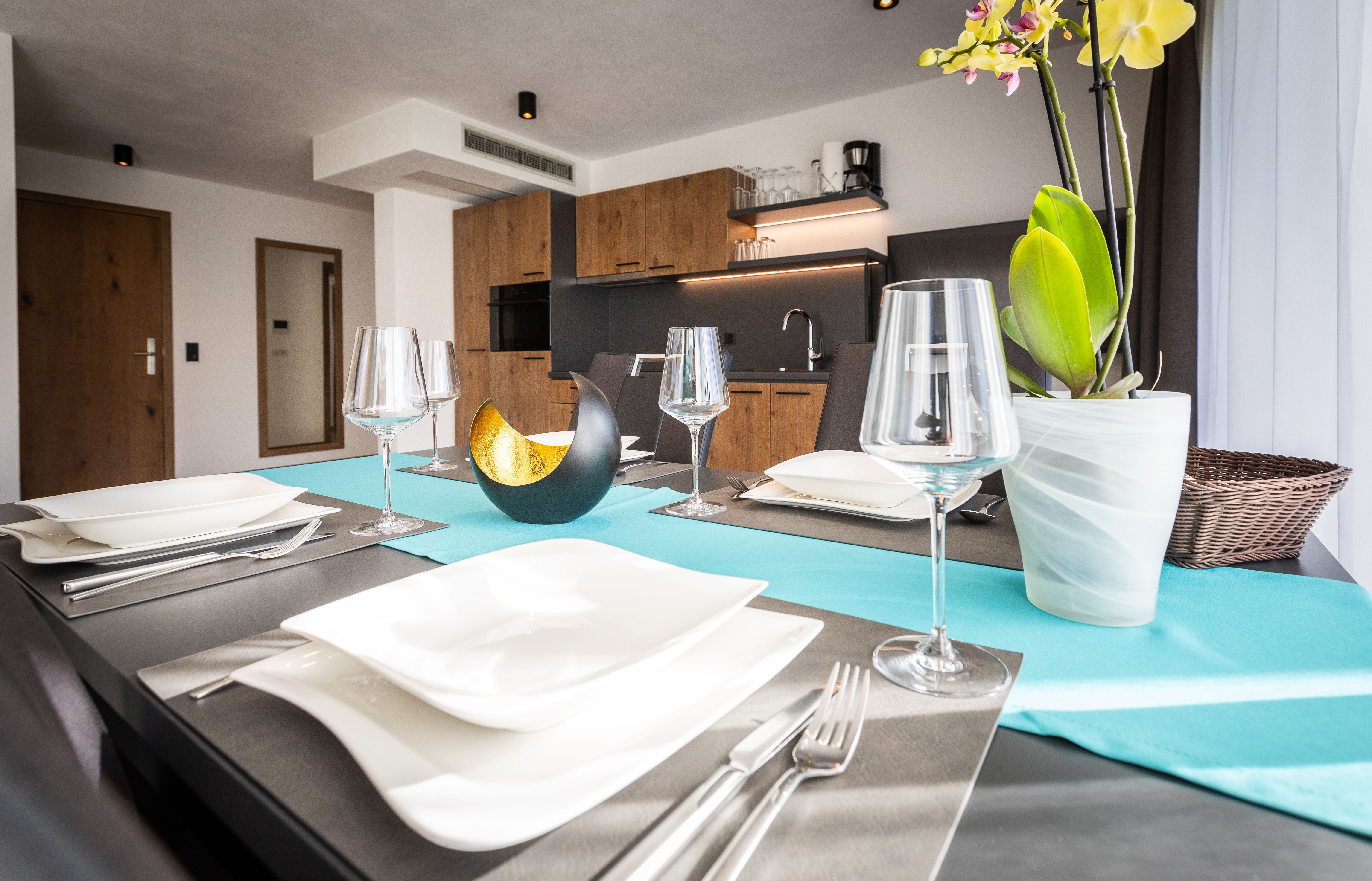 Mit effizient gestalteten Schlafzimmern mit zum Teil bodentiefen Fenstern und Boxspringbetten, modern gestalteten Bädern mit Regendusche, offen gehaltenem Flur, Wohn- und Essbereichen lässt es sich wunderbar entspannen und dem Alltag entfliehen. Unser dezentrales Lüftungssystem realisiert den geforderten Luftwechsel und sorgt für einen behaglichen und gesunden Luftumtausch in allen Appartements. Alle Appartements sind mit WLAN und TV-Flatscreen in allen Wohn- und Schlafzimmern ausgestattet und über einen Personenaufzug von der Tiefgarage bis zum Dachgeschoss erreichbar.