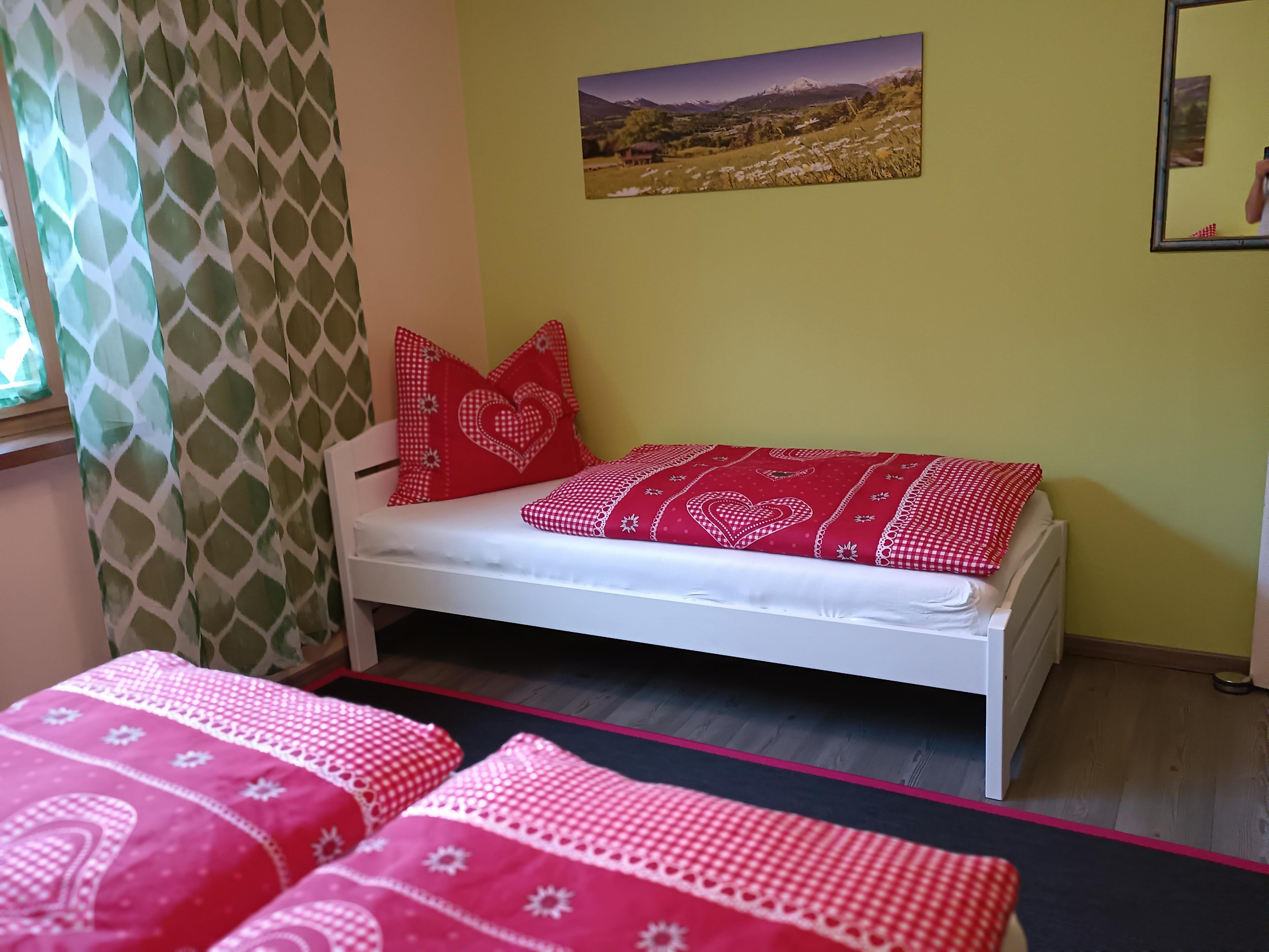 Unsere Ferienwohnung verfügt über 3 Schlafzimmer (2 Schlafzimmer für je 2 Personen und einen Schlafraum für bis zu 3 Personen mit TV), eine Küche mit großem Esstisch und einem großzügigen Badezimmer mit Dusche und WC in der Ferienwohnung und ein neues Bad separat, dass Sie gerne nutzen können.