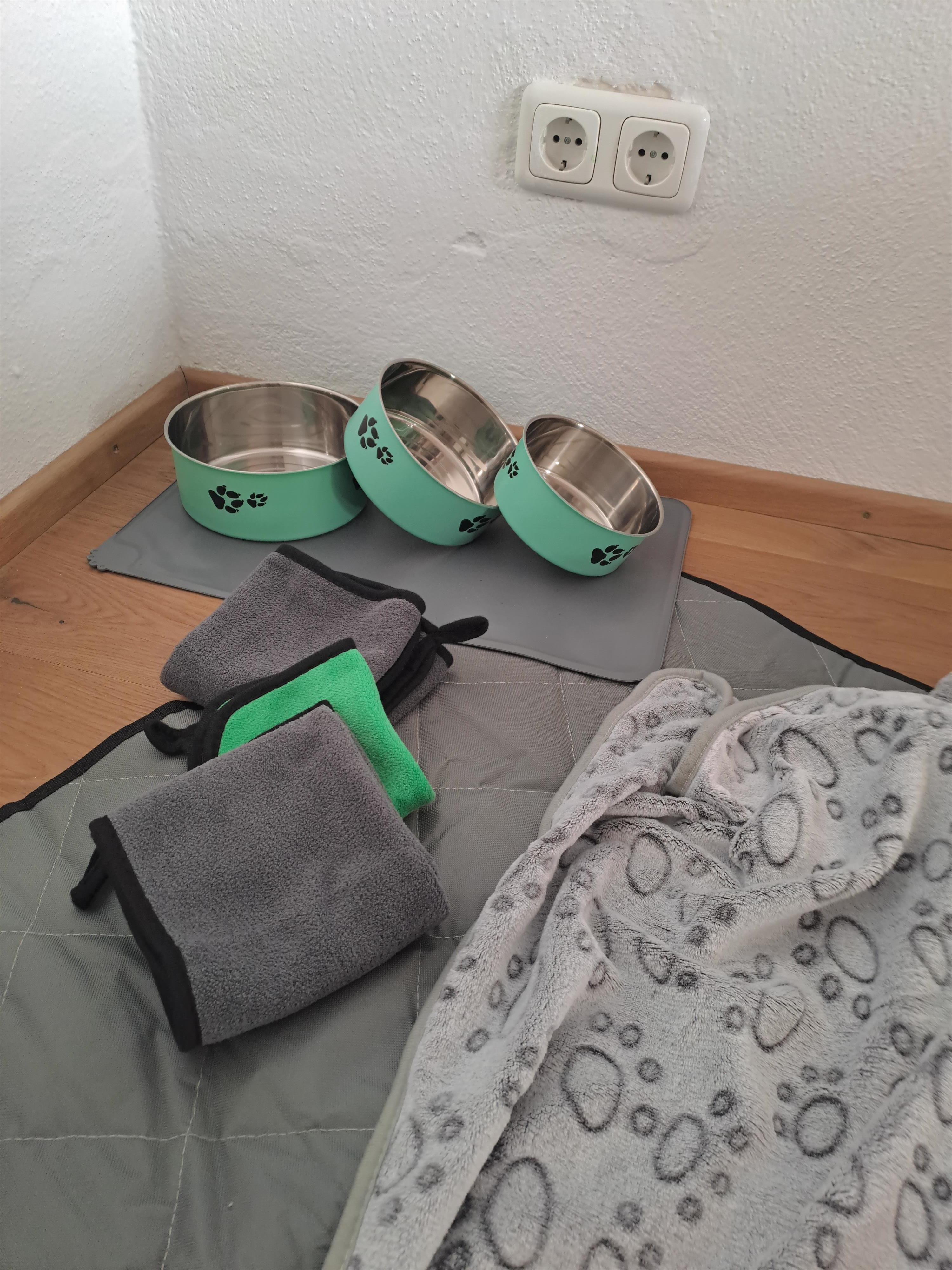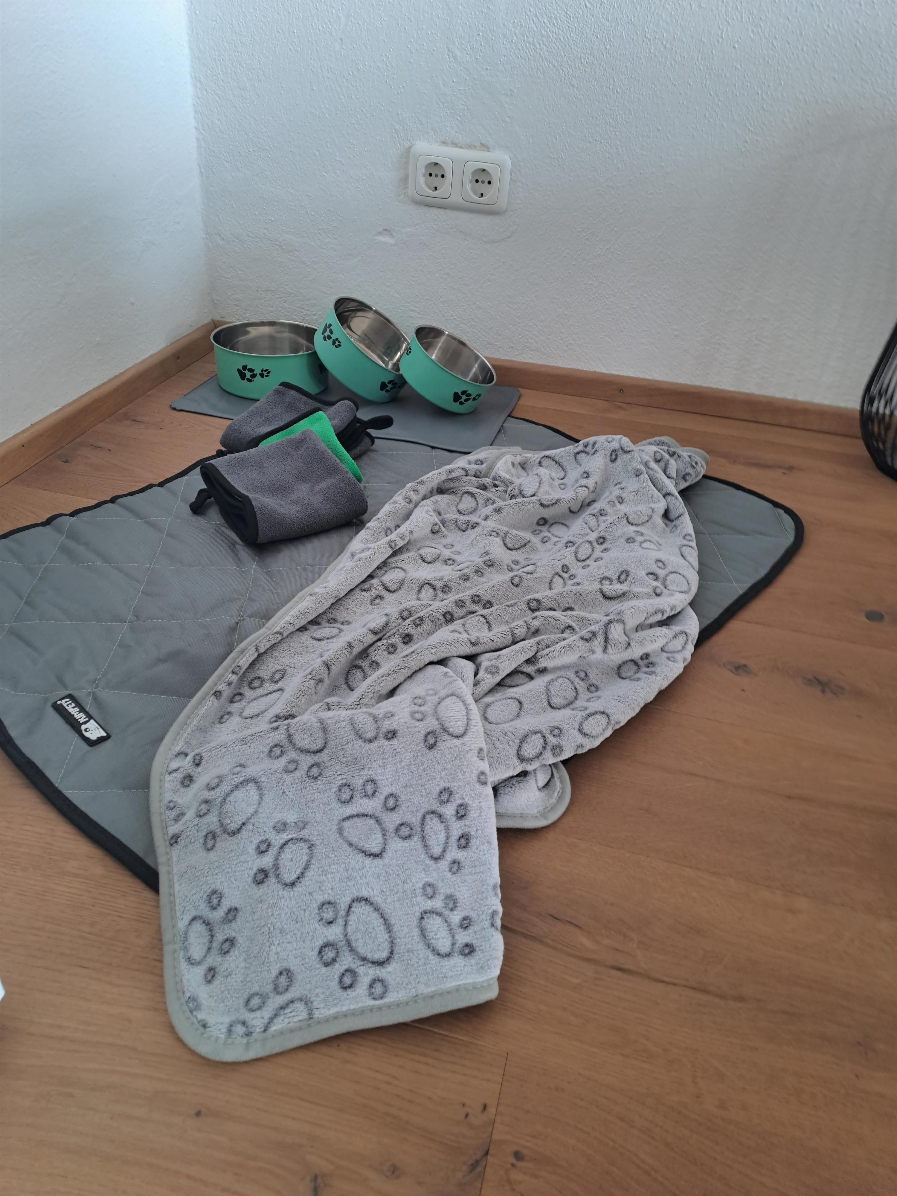 Ein Hund kostet € 15,-- pro Tag; Liege- & Kuscheldecke, sowie Futternäpfe sind vorhanden (vor Ort zu bezahlen).