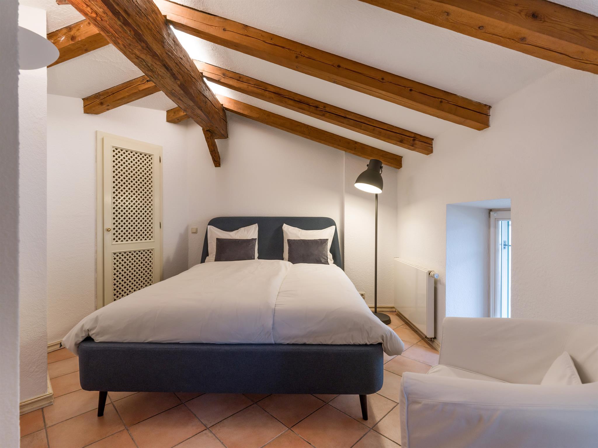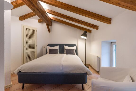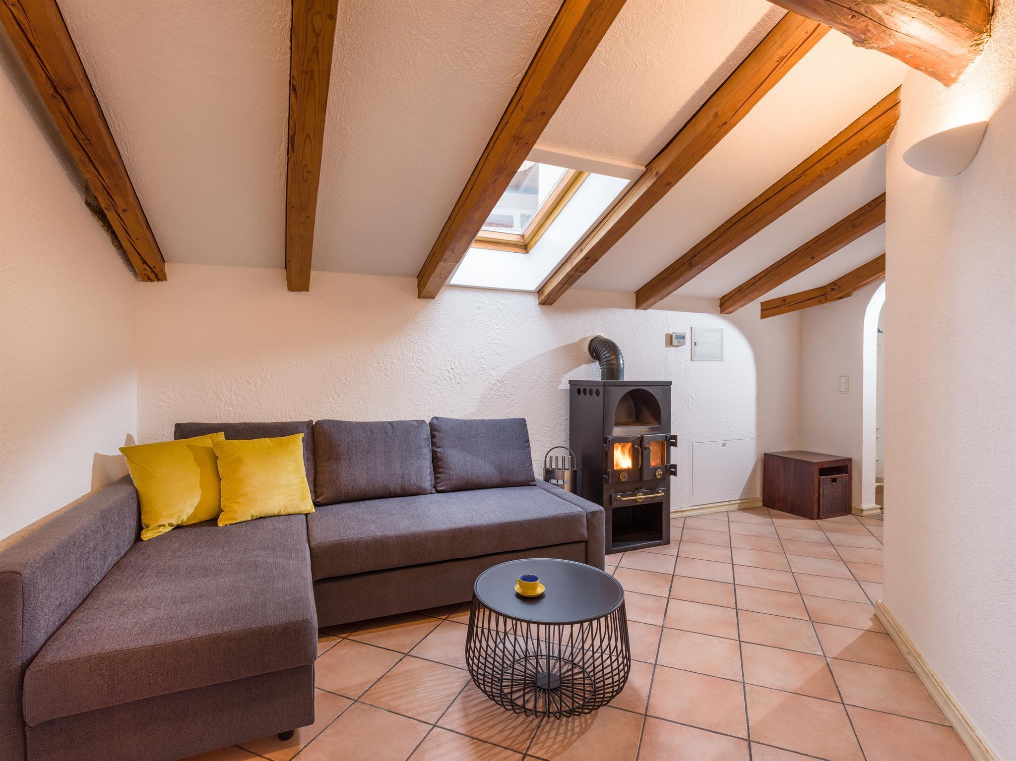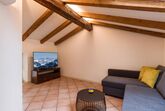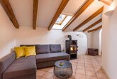 Die ca. 60 m² großen Ferienwohnung mit kleinem Balkon im 2. Stock bietet Platz für bis zu 4 Personen. Es befindet sich eine Einbauküche mit Essecke, komplett eingerichtet mit Herd, Backofen, Kühlschrank, Kaffeemaschine, Wasserkocher, Toaster, etc. Weiters verfügt die Ferienwohnung über 1 Schlafzimmer mit Doppelbett (Kinderreisebett auf Anfrage möglich), Wohnzimmer mit Doppelschlafcouch und TV und einem eigenen Badezimmer mit Badewanne und WC inkl. Handtuchtrockner.