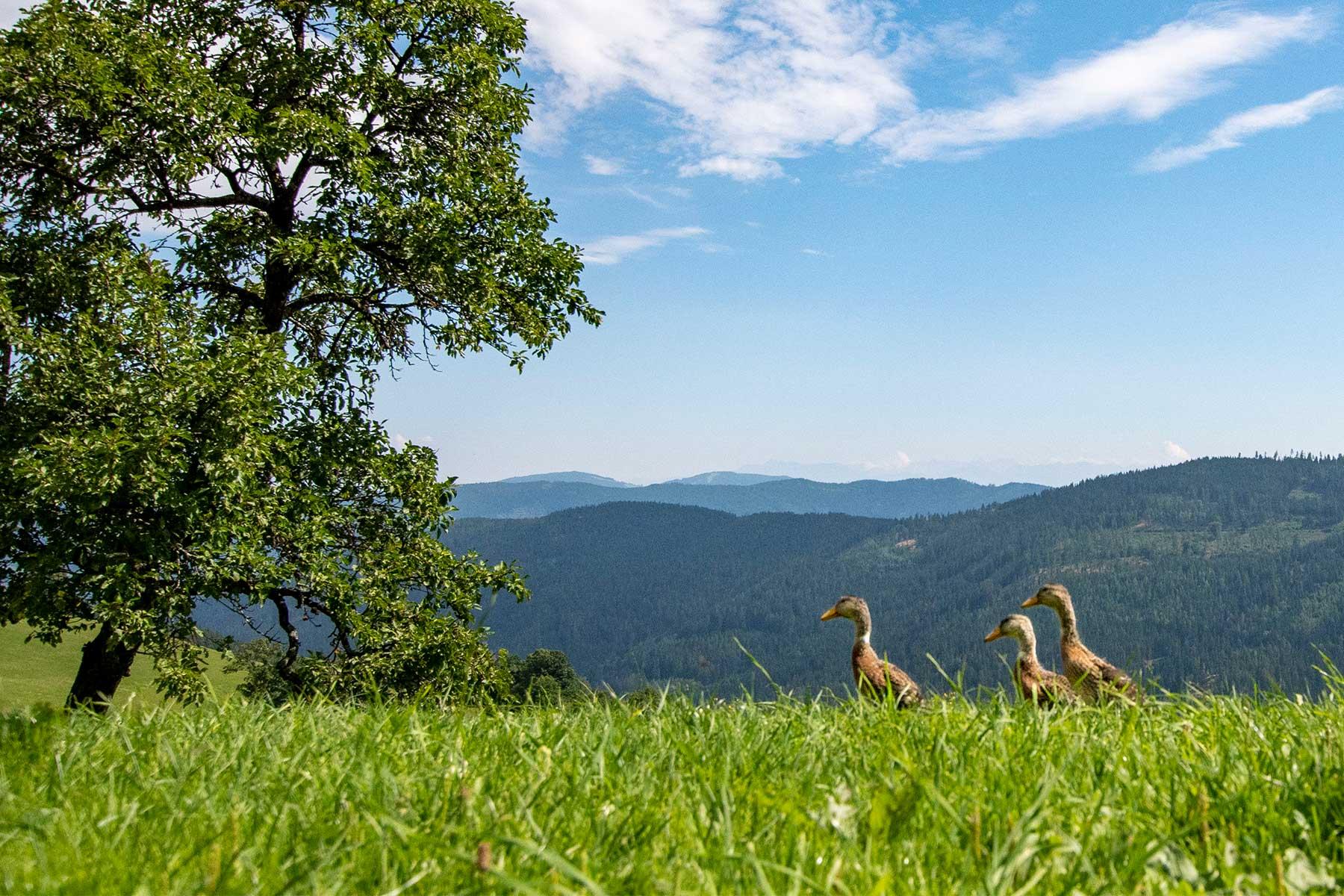 Der Bergbauernhof Wicherle (1170m) liegt am Südhang der Hochrindl mit herrlicher Fernsicht bis zu den Gipfeln der Karawanken (60km). Während sich die Eltern über die vielen Wandermöglichkeiten freuen, sind die Kinder schon auf dem Spielplatz der Natur unterwegs.