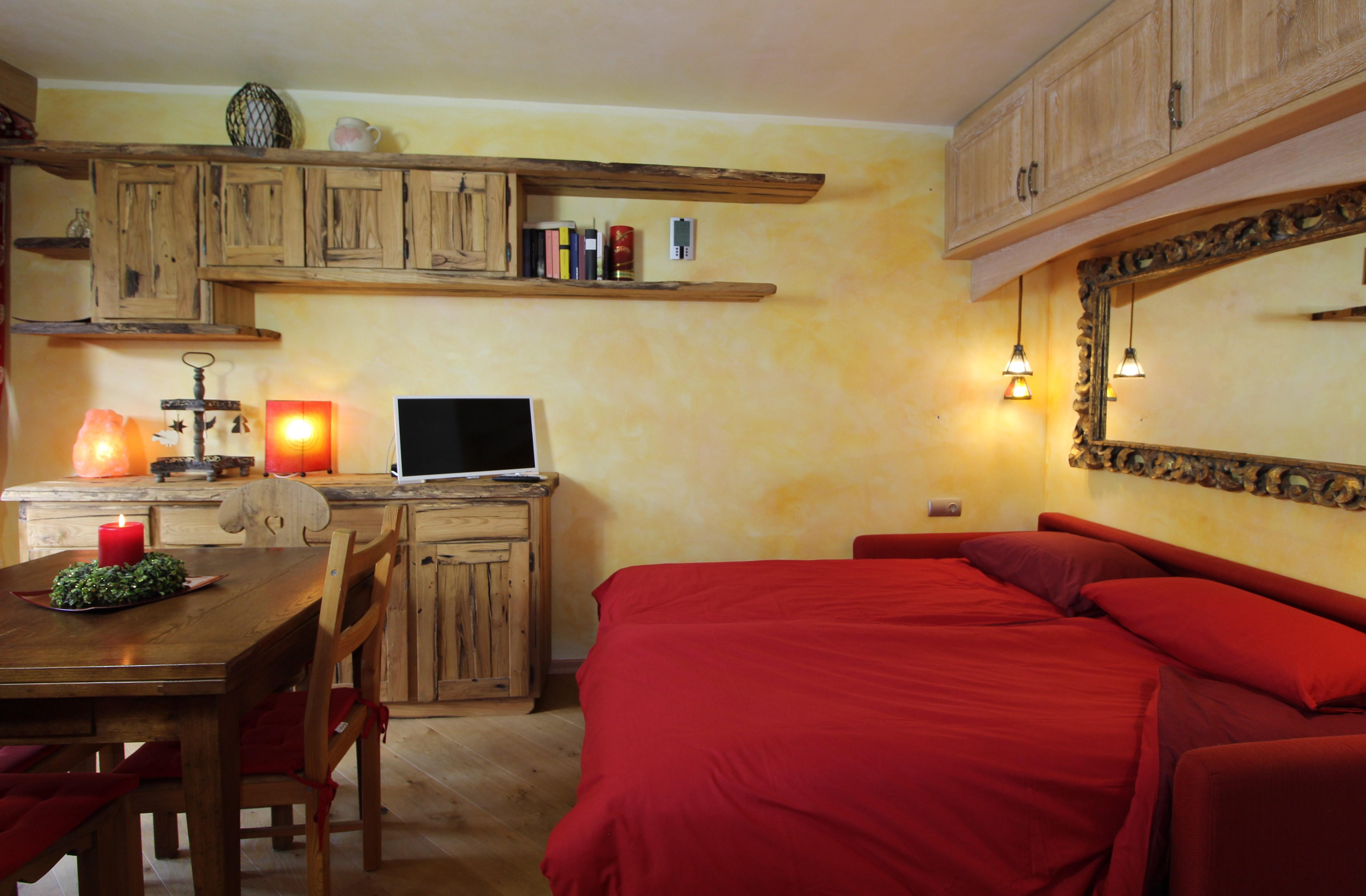 Kleine und sehr schöne Wohnung im Ortsteil Sankt Oswald. Der Raum dieses Studios wurde geschickt genutzt, um 4 Betten unterzubringen, die sich auf ein Etagenbett im Flur und ein bequemes Doppelschlafsofa im Wohnzimmer verteilen. Das Badezimmer verfügt über ein Fenster und eine Whirlpool-Badewanne zum Entspannen nach einem Tag Ski oder Wandern auf den Bergen. Die Küche ist komplett ausgestattet mit Spülmaschine, Backofen, Kühl- und Gefrierschrank. Balkon mit Blick auf die Piste, Skiraum und Parkplatz runden die Annehmlichkeiten dieses Hauses ab.