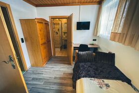 Zimmer 17 ist ein Zimmer für 1 Person. Darüber hinaus verfügt dieses Zimmer über ein Badezimmer mit Dusche und WC.