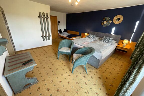 Zimmer 3 ist ein geräumiges Zimmer für 3 Personen. Dieses Zimmer verfügt außerdem über ein Badezimmer mit Dusche und ein separates WC.