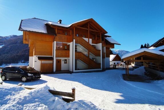 Im Ortsteil Obertschern, oberhalb von Bad Kleinkirchheim, in Panoramalage auf der Sonnenseite des Tales, wenige Meter von der Skibushaltestelle, ca. 500 Meter von der Piste Sonnwiese, 2,5 Kilometer vom Ortszentrum entfernt.