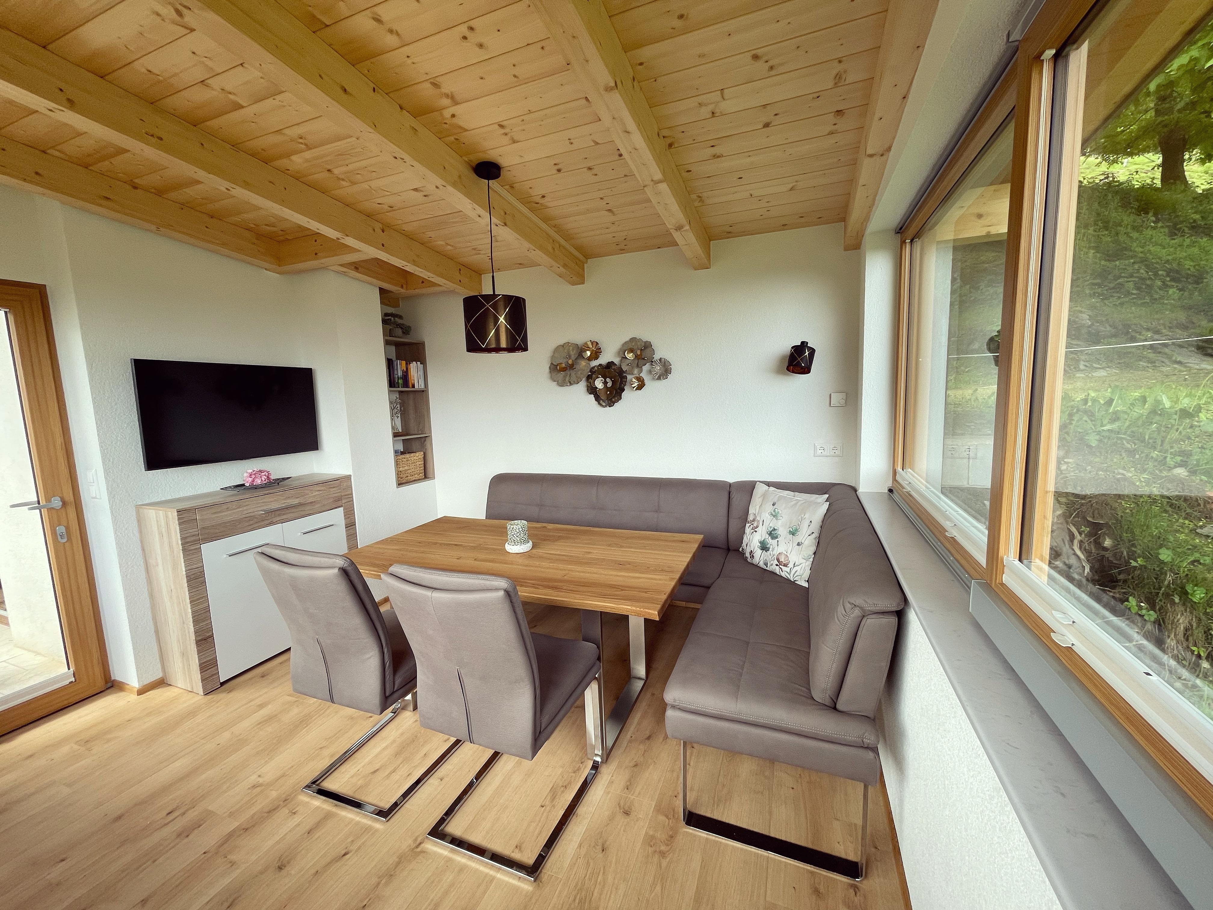 Die Ferienwohnung Sonnseite befindet sich im Nebengebäude im 1. Stock und ist mit Vollholzmöbeln und viel Liebe zum Detail eingerichtet. Die Wohnung besteht aus 2 Schlafzimmern mit 2 Doppelbetten, einer Dusche und einer mit allem Komfort ausgestatteten Wohnküche mit bequemer Essecke. Genießen Sie am Südbalkon und im neuen Wintergarten mit Panoramaschiebefenstern die traumhafte Aussicht über`s Land bis zu den Karawanken!