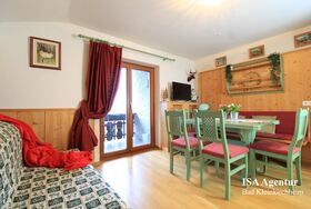 Komfortable Wohnung im zweiten und letzten Stock, ganz in der Nähe der Pisten und Supermärkte. Die Sankt Kathrein Therme erreichen Sie nach einem kurzen Spaziergang. Ein Schlafzimmer mit Doppelbett und ein damit verbundenes Kinderzimmer mit Stockbett und Zusatzbett, ein Wohnzimmer mit grosser Küche (mit Geschirrspüler), Bad mit Dusche und Außenterrasse. Möglichkeit, für Gruppen von Familien oder Freunden, eine weitere Wohnungen im selben Gebäude zu mieten.
