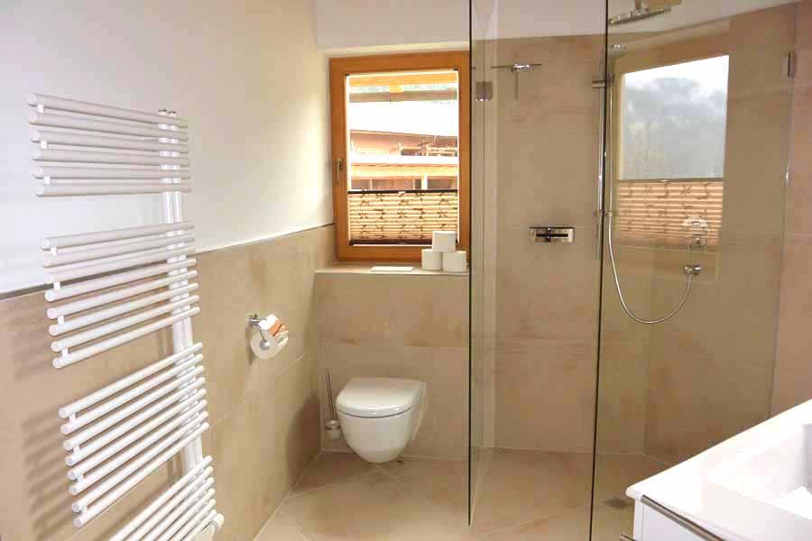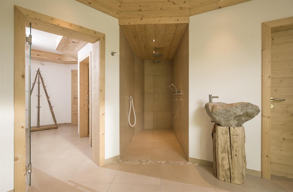 Weiters gibt es eine große Dusche, einen Trinkbrunnen und ein separates WC.