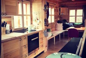 • Komplett ausgestattete Küche im Hollmann-Style, Kaminofen mit Kochfunktion