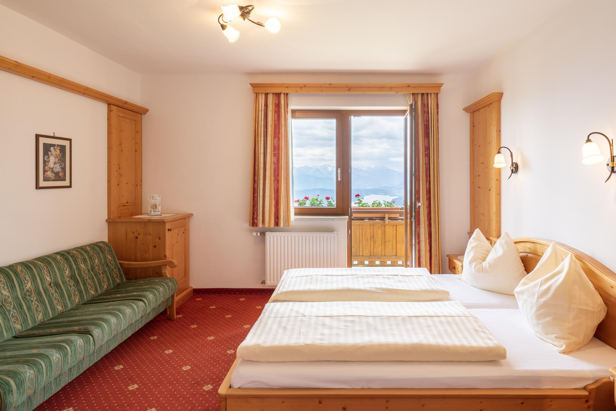 Der Alpengasthof Bergfried bietet Ihnen gemütlich eingerichtete Doppelzimmer mit Möbeln aus heimischer Fichte, Dusche, Badezimmer mit WC und Dusche, Sat-TV, Radio, Couch und Panoramabalkon mit Weitblick vom Millstätter See bis hin zum Großglockner, dem höchsten Berg Österreichs!