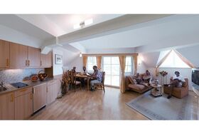 Apartment 1 großen Wohn-/Schlafraum mit Küche, 2 Schlafräume, Südbalkon, im 2. Stock Komplett ausgestattet mit Heizung, Bettwäsche, Bade- und Handtücher, Seeblick-Balkon mit Liegestühlen, Vorraum mit Garderobe und Schuhputzzeug, Bad und WC getrennt, Föhn, Schminkspiegel Küche: Geschirrspüler, Kühlschrank, E-Herd, Mikrowelle, Kaffeemaschine, Geschirr, Sat-TV, Telefon, Safe