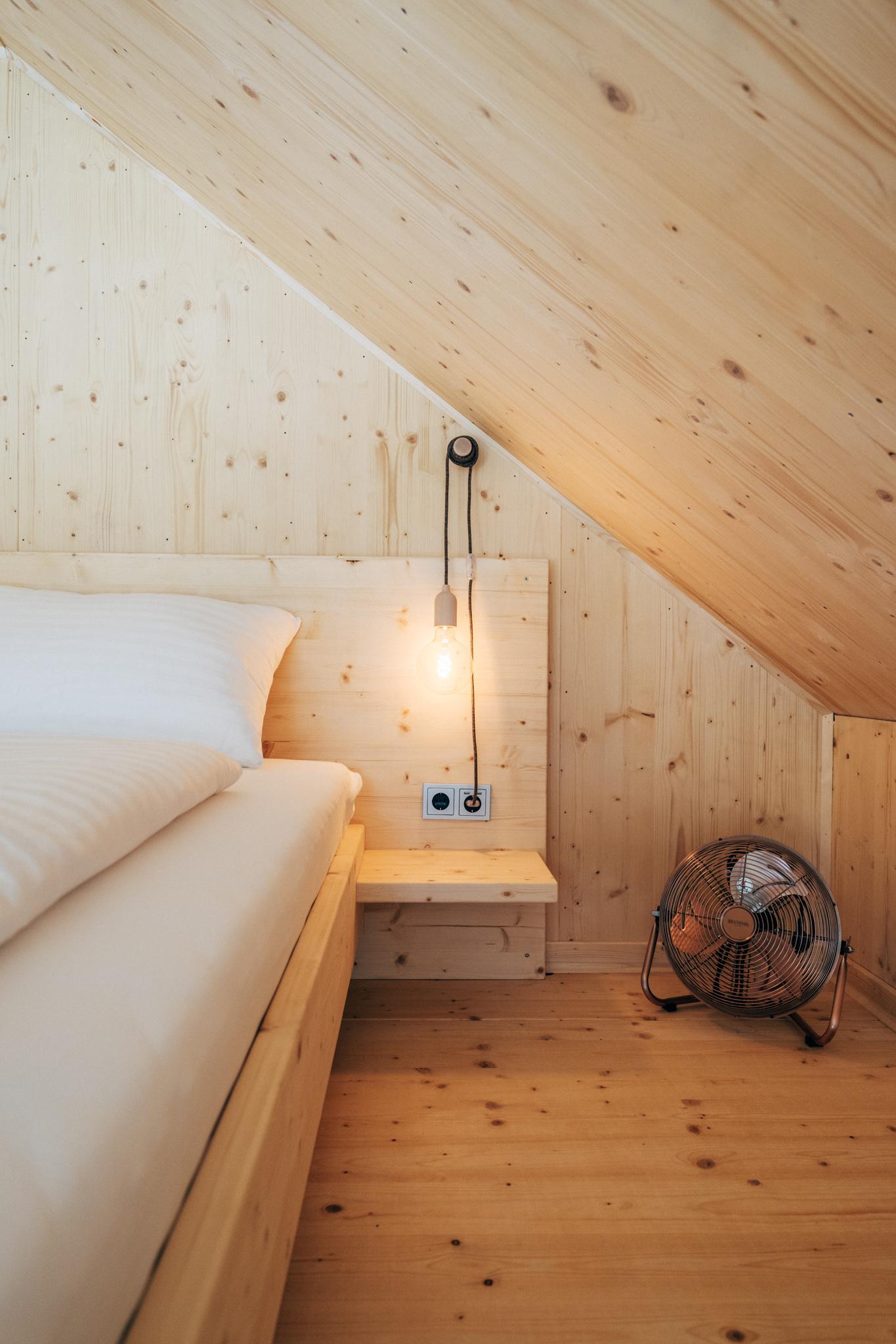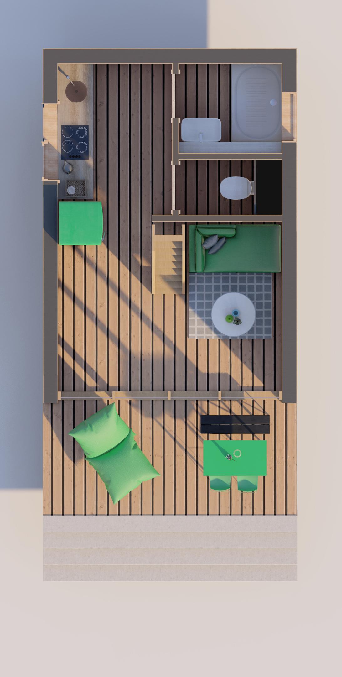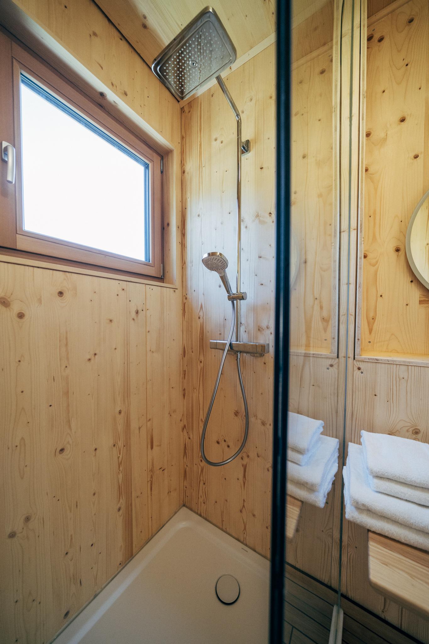 Salvia Green - View 34 Quadratmeter und dennoch reichlich Platz für vier Personen. Im Erdgeschoß befindet sich die moderne Küche samt geräumigem Wohnraum, das Badezimmer und ein separates WC. Über eine Treppe gelangen Sie in den 1. Stock, wo das Schlafzimmer mit Traumblick durch die große Glasfront bezaubert. Wie alle Lodgen verfügt Salvia Green über eine tolle möblierte Terrasse, WLAN, einer Grundausstattung an Wäsche und Geschirr sowie 3 Yogamatten. Ob als Familie, mit Freunden oder zu zweit. Entspannte Stunden im schönen Ambiente von Salvia Green sind garantiert!