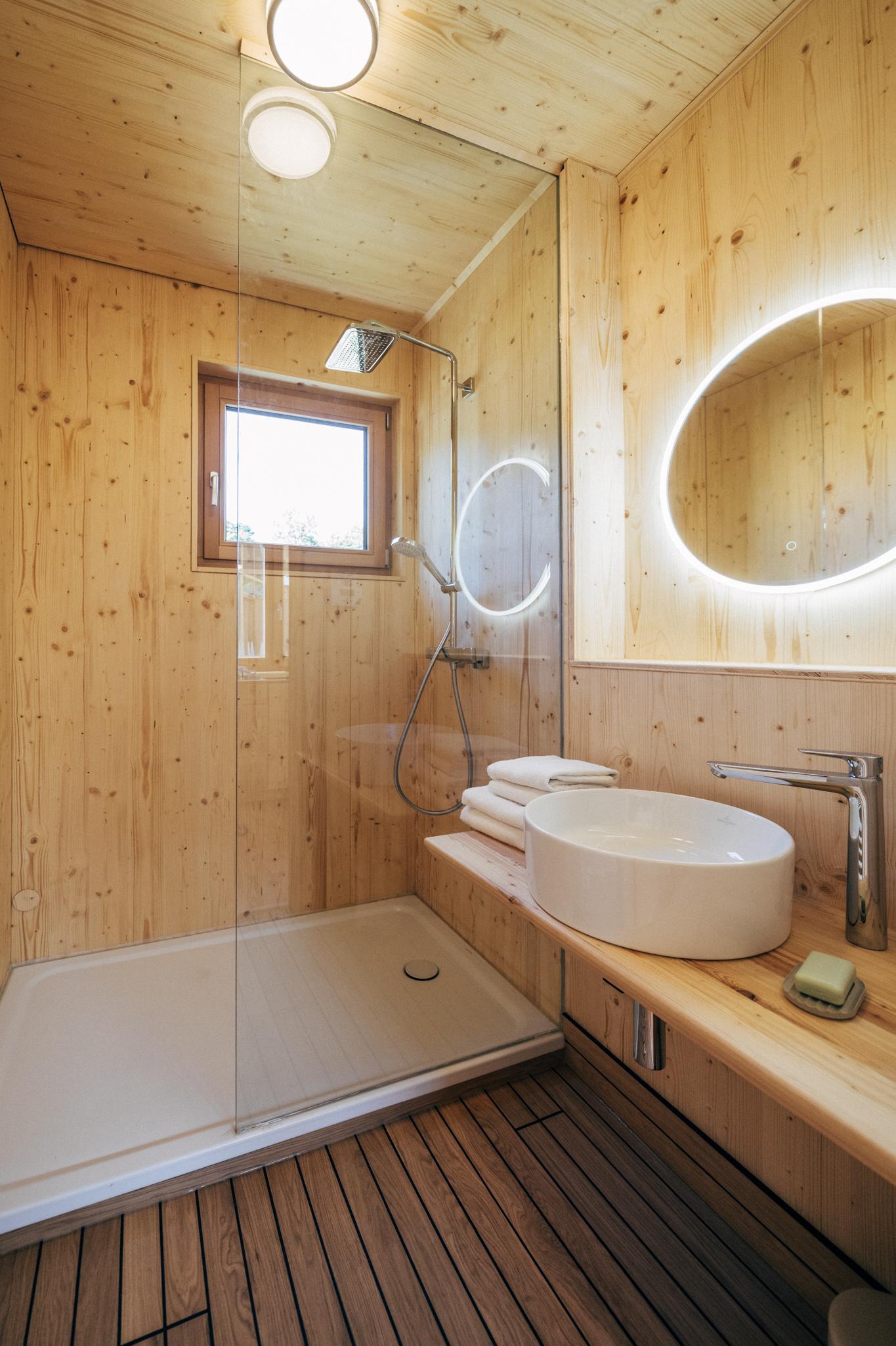 Drei unterschiedliche Lodge Kategorien stillen die Sehnsucht nach Individualität und Freiheit. Der moderne, reduzierte Baustil in Holz und Glas fügt sich dabei harmonisch in die Landschaft ein. Teils mit zwei Schlafzimmern, mit freistehender Badewanne, mit integrierter Küche und Wohnraum haben Sie die freie Wahl. Welche Lodge ist wohl Ihr Place to be?