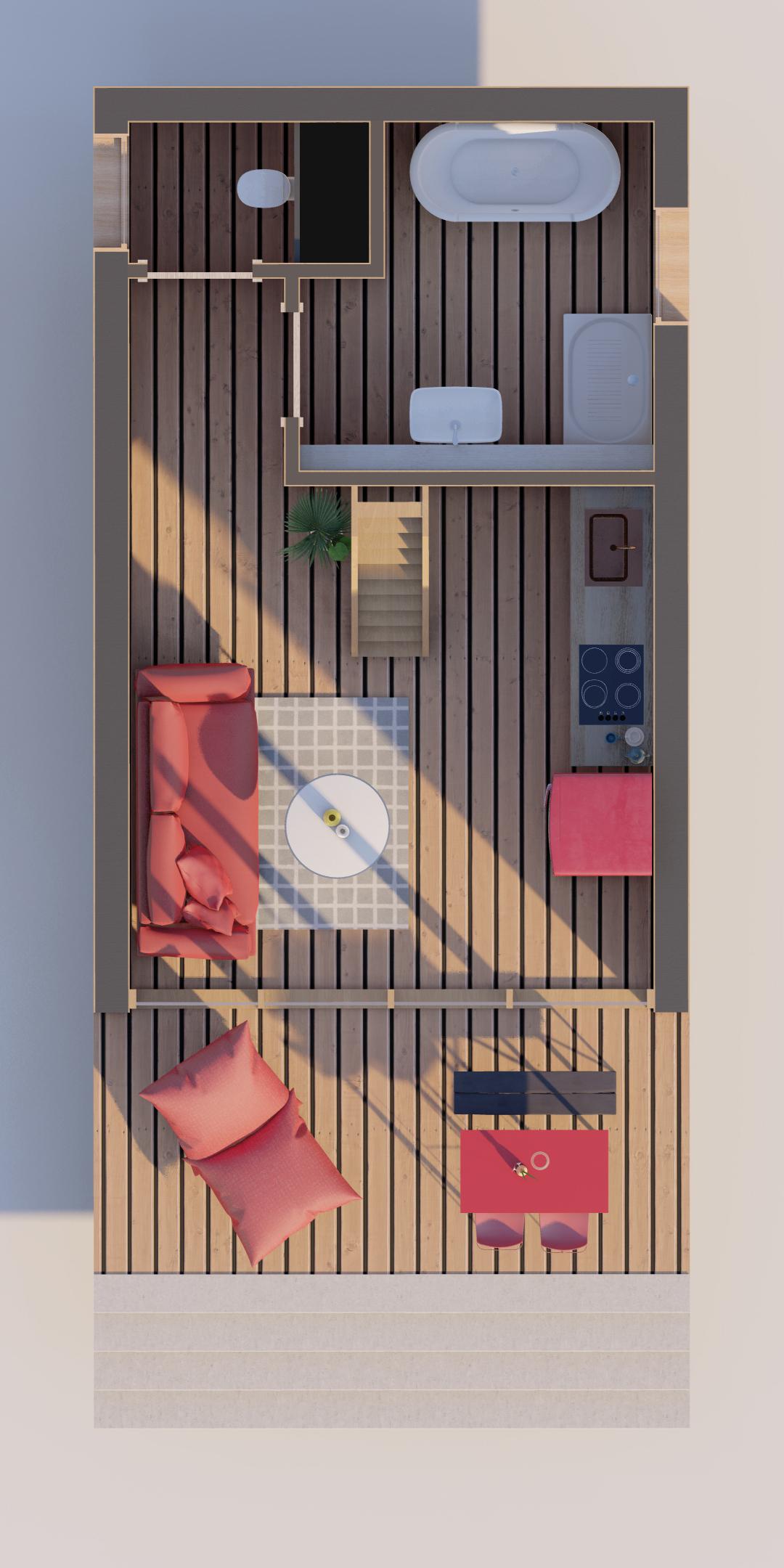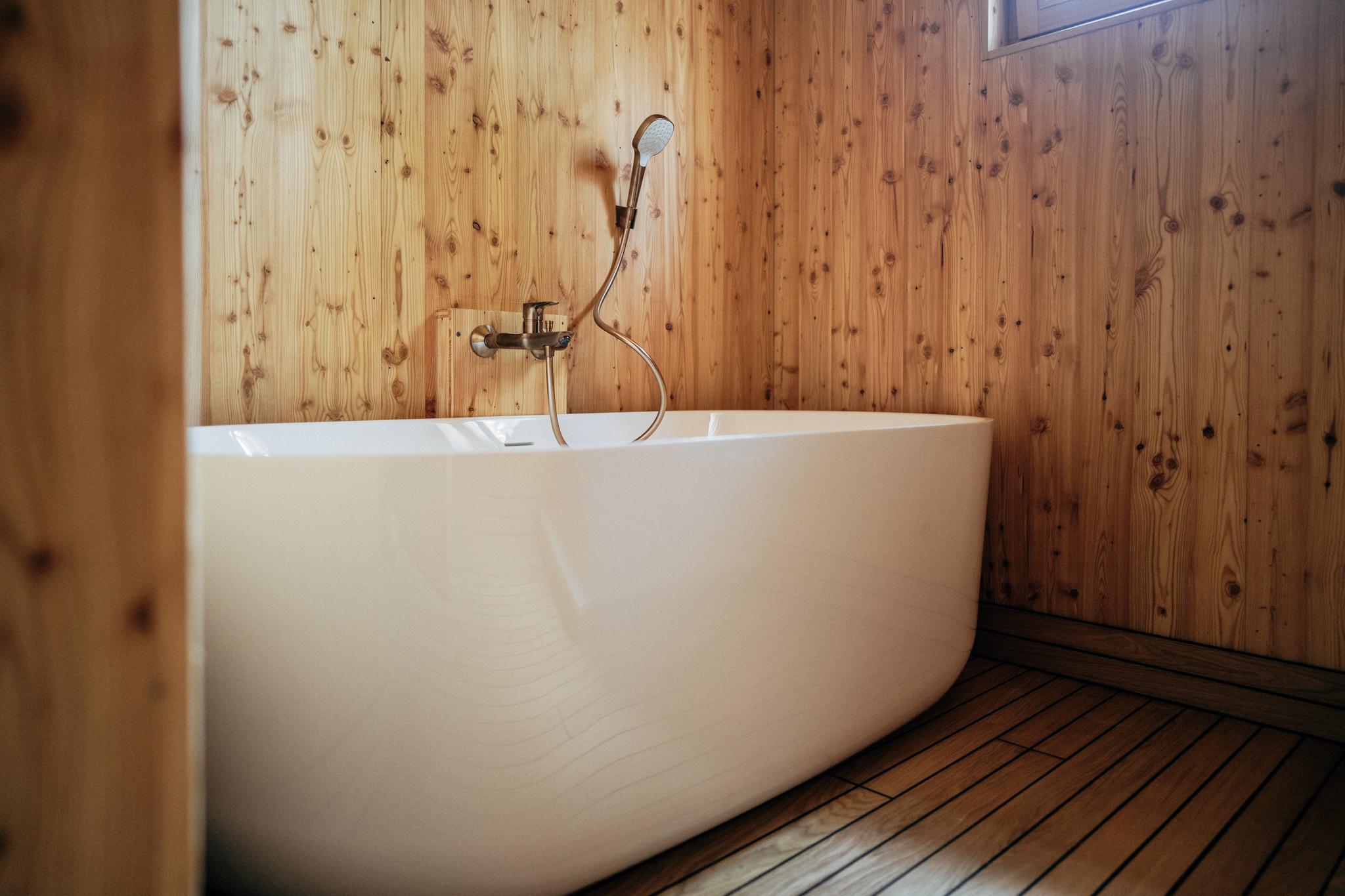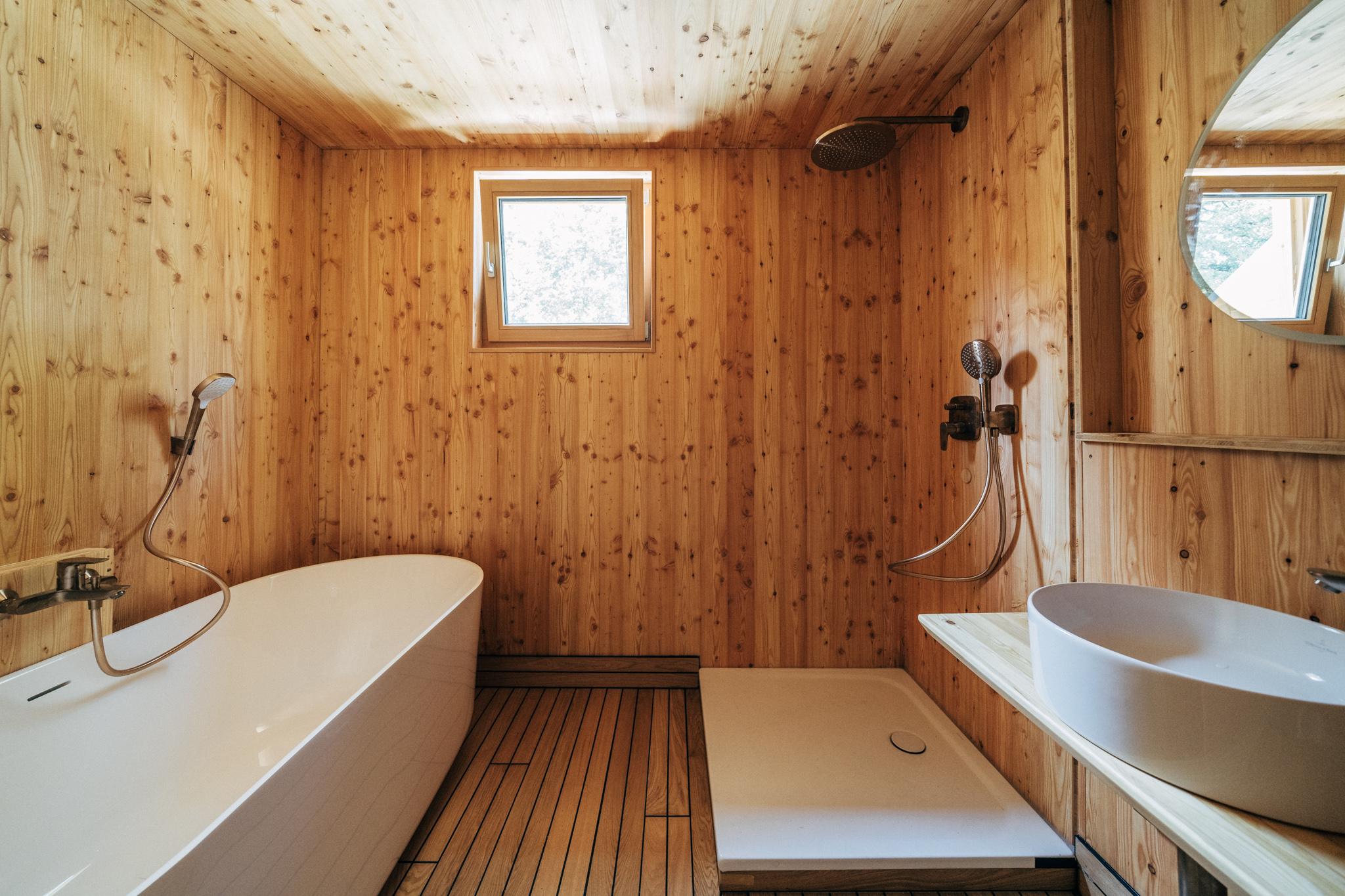 Ruby Red - View View Die beste Entscheidung für Romantiker. Das große Badezimmer im Erdgeschoß verfügt über eine freistehende Badewanne für entspannte Stunden zu zweit. Im Erdgeschoß befindet sich die moderne Küche samt geräumigem Wohnraum, das erwähnte Bad und ein separates WC. Über eine Treppe gelangen Sie in den 1. Stock, wo das Schlafzimmer mit Traumblick durch die große Glasfront bezaubert. Wie alle Lodgen verfügt Ruby Red über eine tolle möblierte Terrasse, High Speed Internet, einer Grundausstattung an Wäsche und Geschirr sowie 3 Yogamatten. Designverliebte werden sich in dieser aus heimischem Holz und Glas erbauten Lodge besonders wohlfühlen.