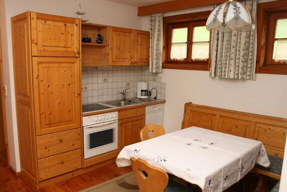 Unsere FICHTENWOHNUNG ist im für uns üblichen Landhausstil eingerichtet. Die Wohnung verfügt über ein Schlafzimmer mit Doppelbett und Balkonzugang, einem urigen Wohn- & Essbereich mit Küche und einer zweiten Schlafmöglichkeit und einem Badezimmer mit Fenster, Dusche und Toilette. Am Morgen kann mit einer frich aufgebrühten Tasse Kaffe der Sonnenaufgang genossen werden.